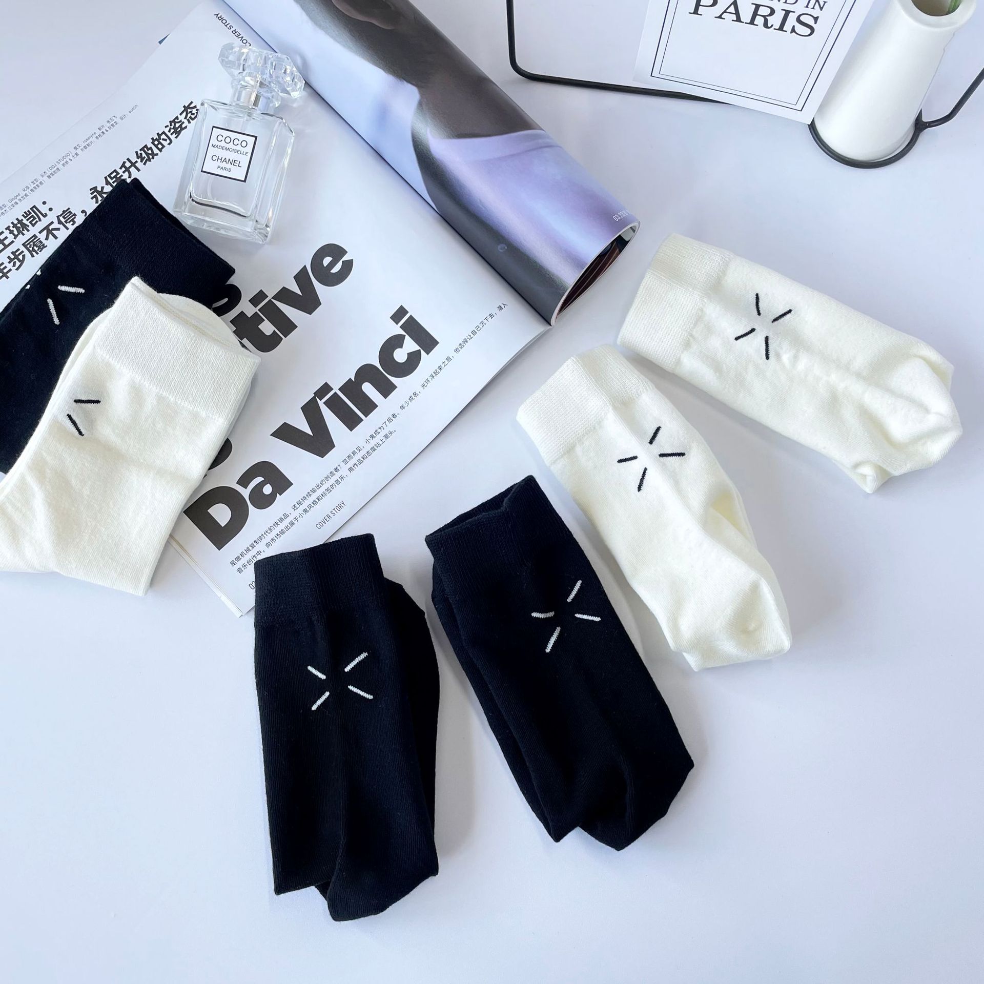 Ziyang 가을과 겨울 새로운 흑백 면 양말 여자 양말 일본식 심플 양말 한국 스타일 모든 매치 유행 양말 스타킹