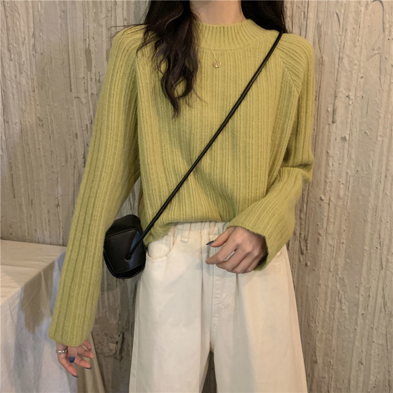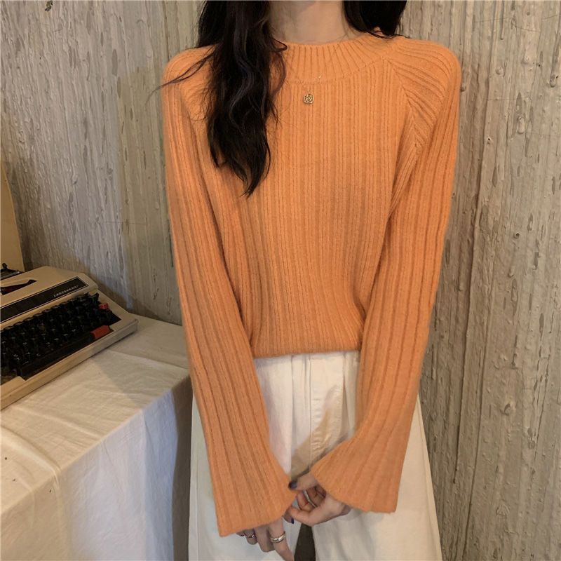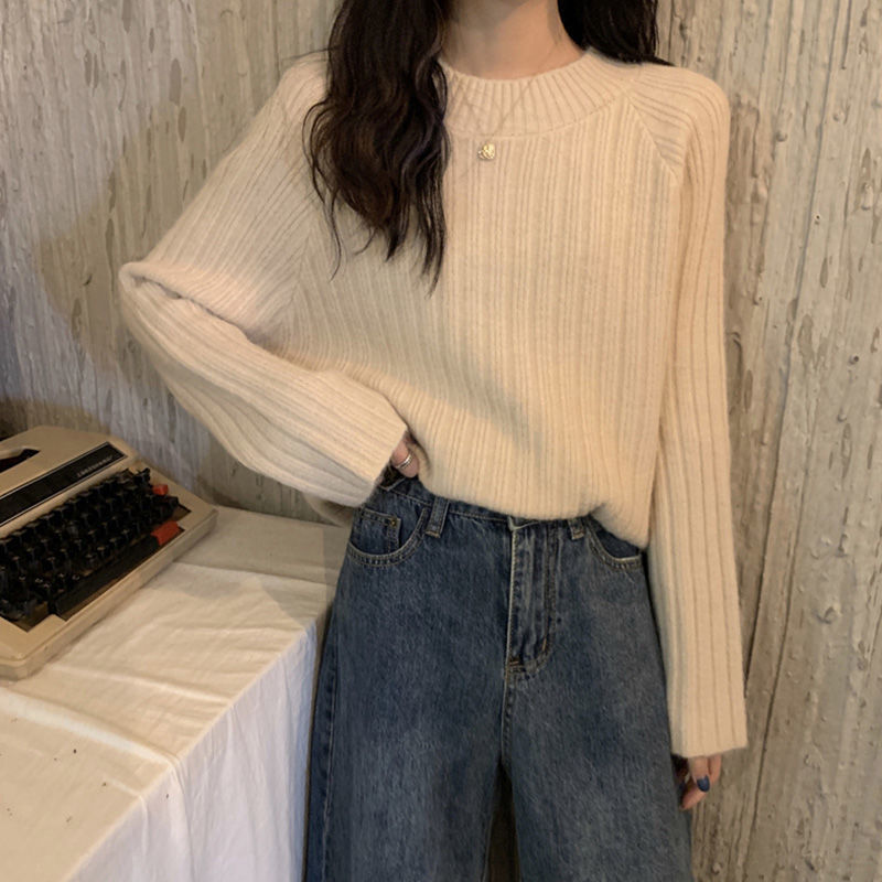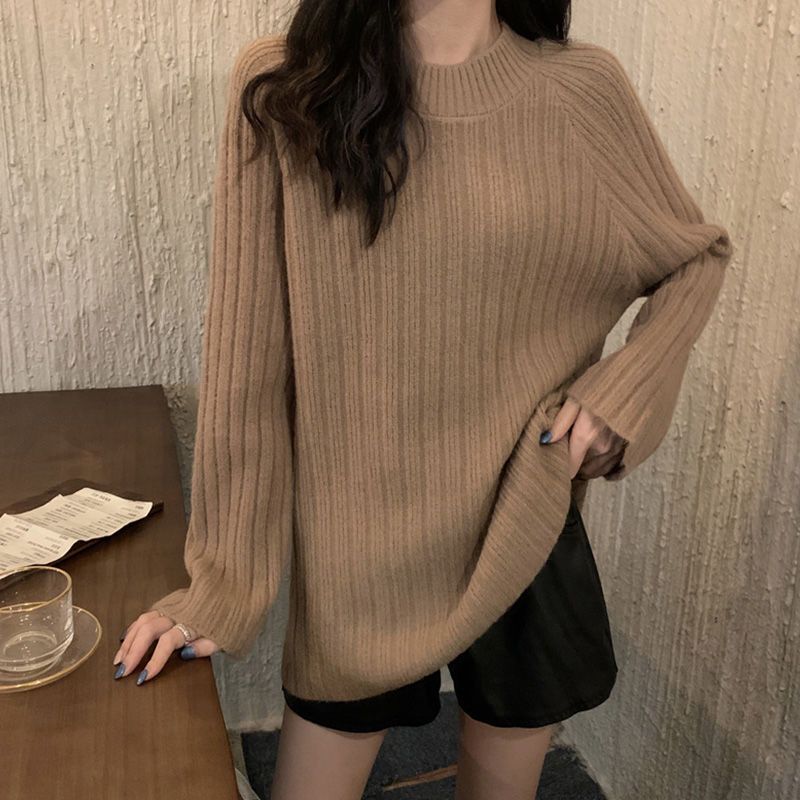 한국식 올매치 아웃도어 레이지 스타일 탑 니트 베이스 셔츠 2023 가을 겨울 디자인 라운드넥 루즈한 스웨터