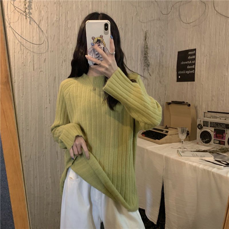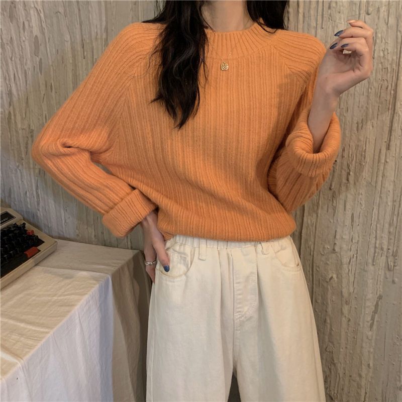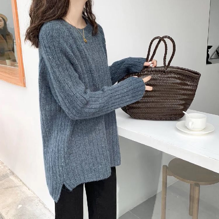 한국식 올매치 아웃도어 레이지 스타일 탑 니트 베이스 셔츠 2023 가을 겨울 디자인 라운드넥 루즈한 스웨터스토어 가기