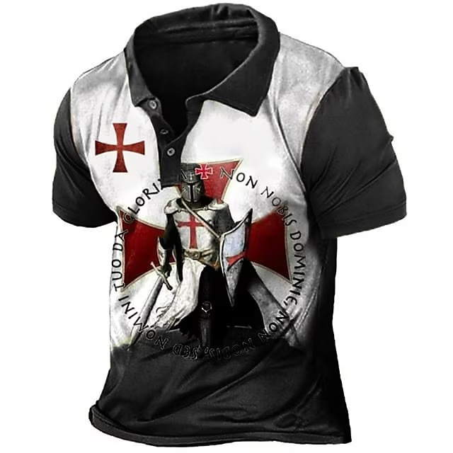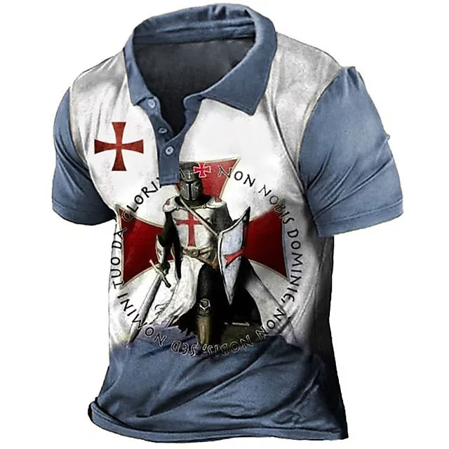 여름 새로운 남성 반팔 폴로 골프 셔츠 세인트 3D 프린트 옷깃 버튼 티셔츠 편안한 통기성