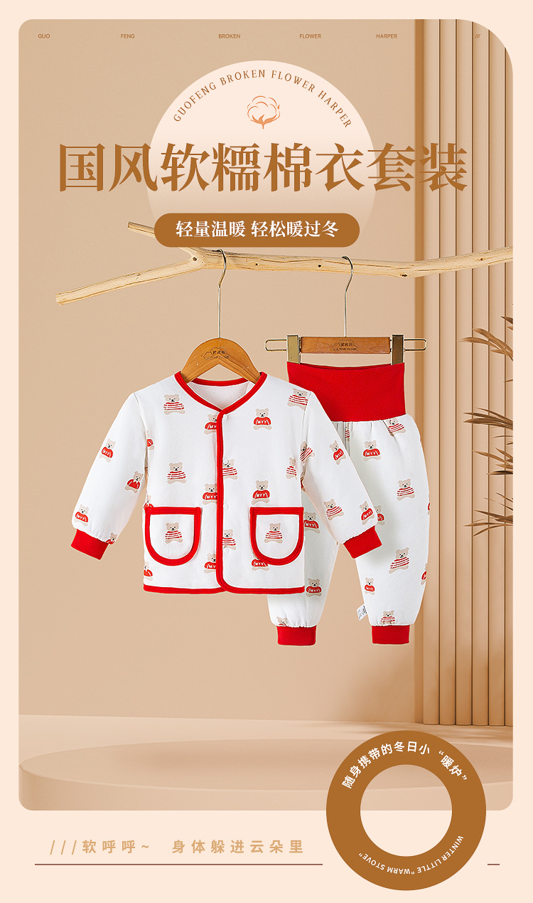아기의 가정복 가을과 겨울 면 어린이 면 옷 세트 중국 스타일 어린이 따뜻한 옷 투피스 면 바지스토어 가기