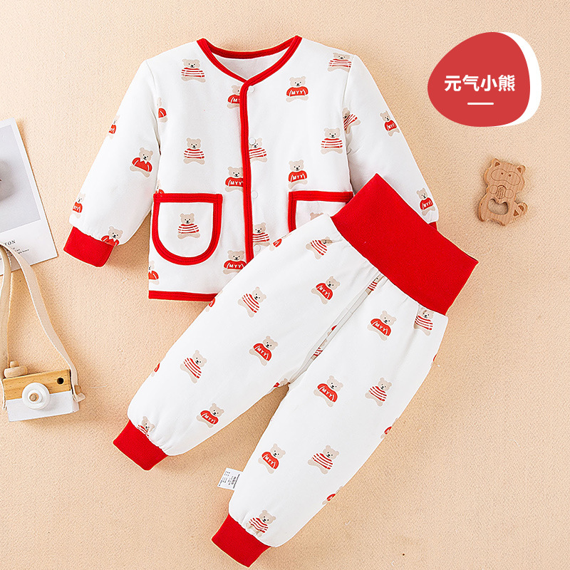 아기의 가정복 가을과 겨울 면 어린이 면 옷 세트 중국 스타일 어린이 따뜻한 옷 투피스 면 바지