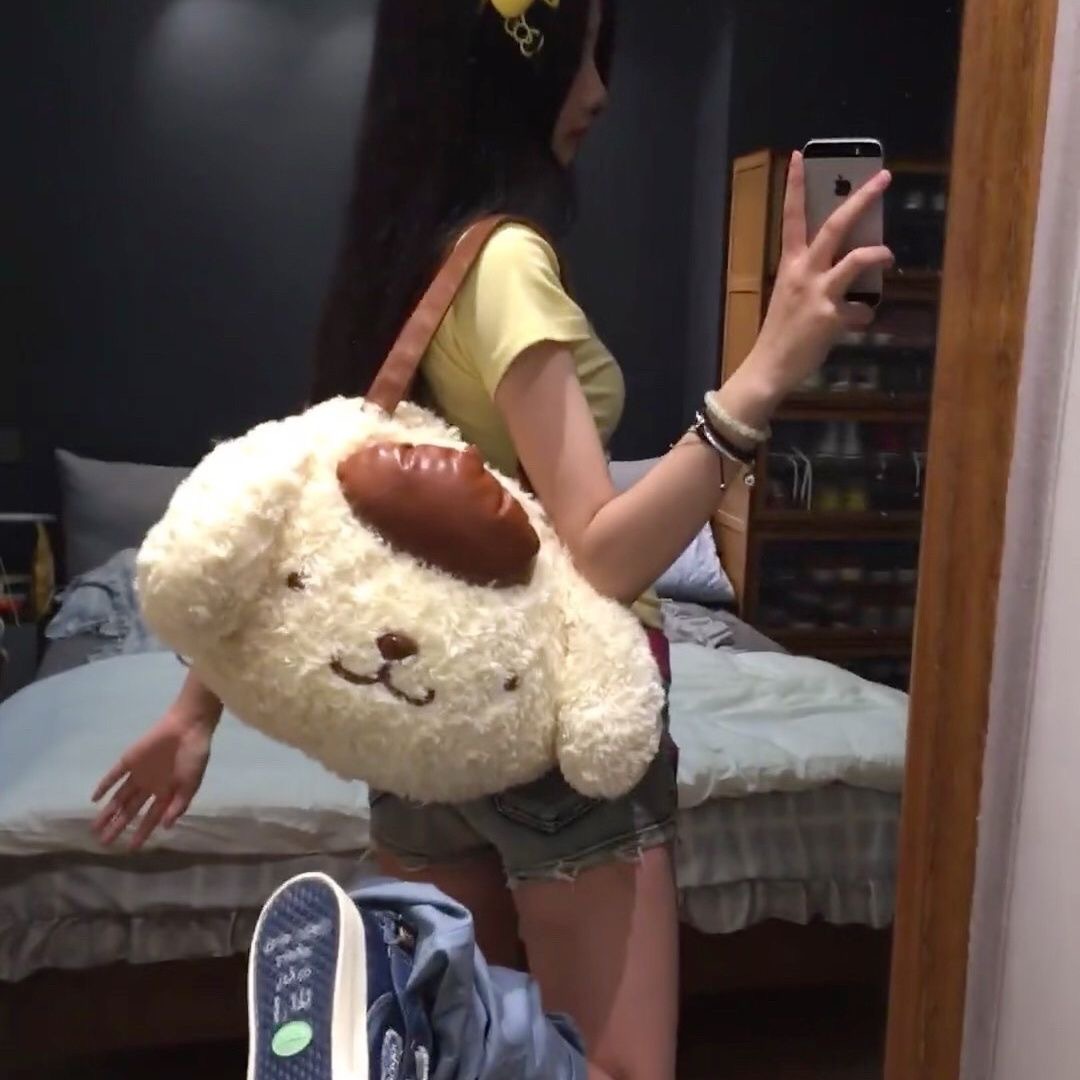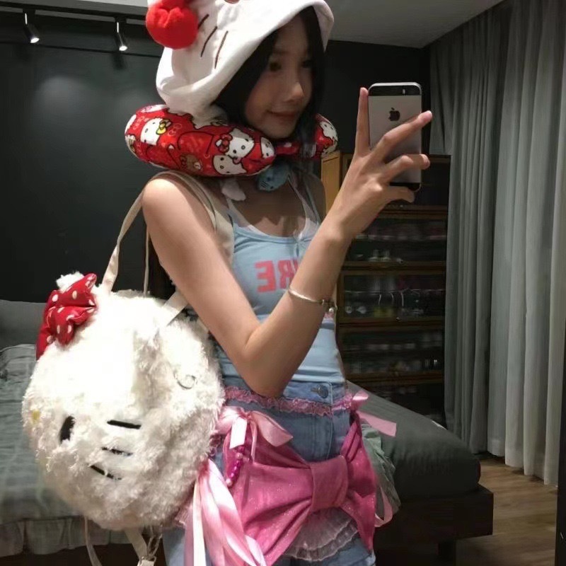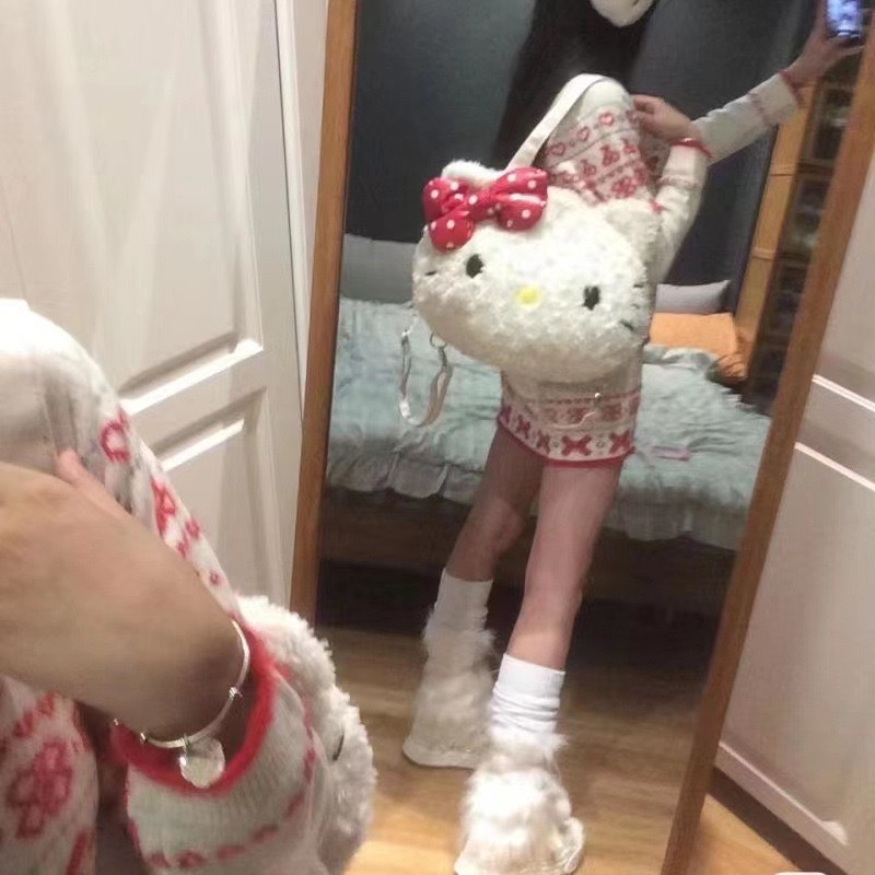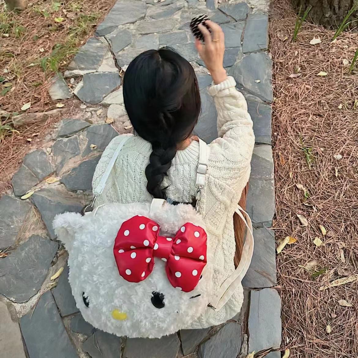 518535 귀여운 플러시 소녀 키티 큰 얼굴 고양이 가을 겨울 신상 2023 패션 플러시 백팩 출퇴근용스토어 가기