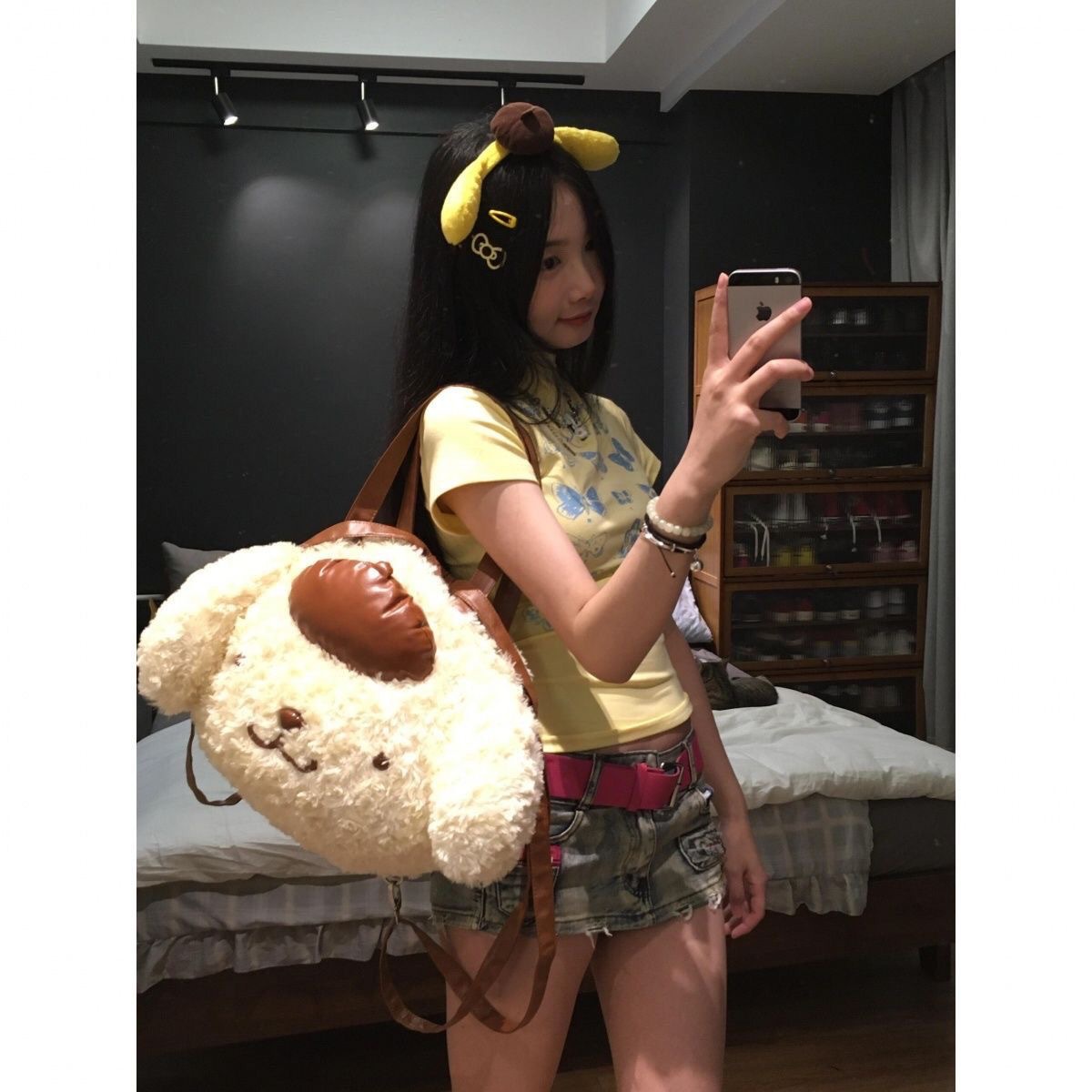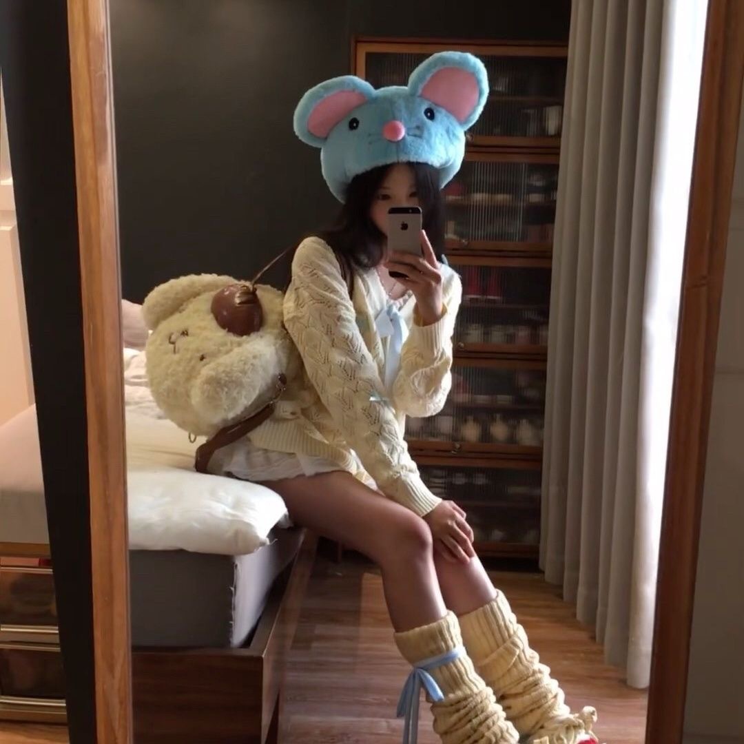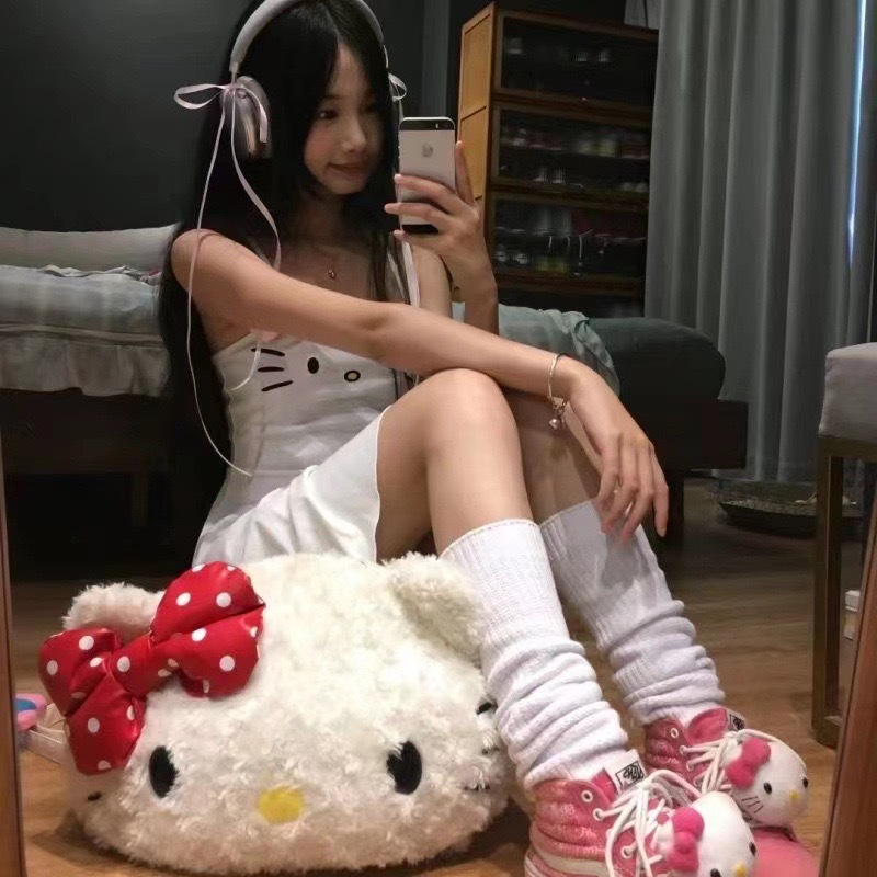 518535 귀여운 플러시 소녀 키티 큰 얼굴 고양이 가을 겨울 신상 2023 패션 플러시 백팩 출퇴근용스토어 가기