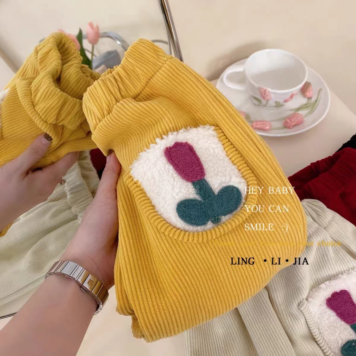 여아 2023 겨울 기모 두꺼운 바지 아동복 한국식 느슨한 올매치 따뜻한 바지 겨울 스포츠 바지스토어 가기