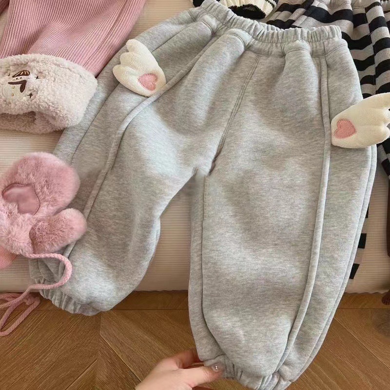 여아 2023 겨울 기모 두꺼운 바지 아동복 한국식 느슨한 올매치 따뜻한 바지 겨울 스포츠 바지