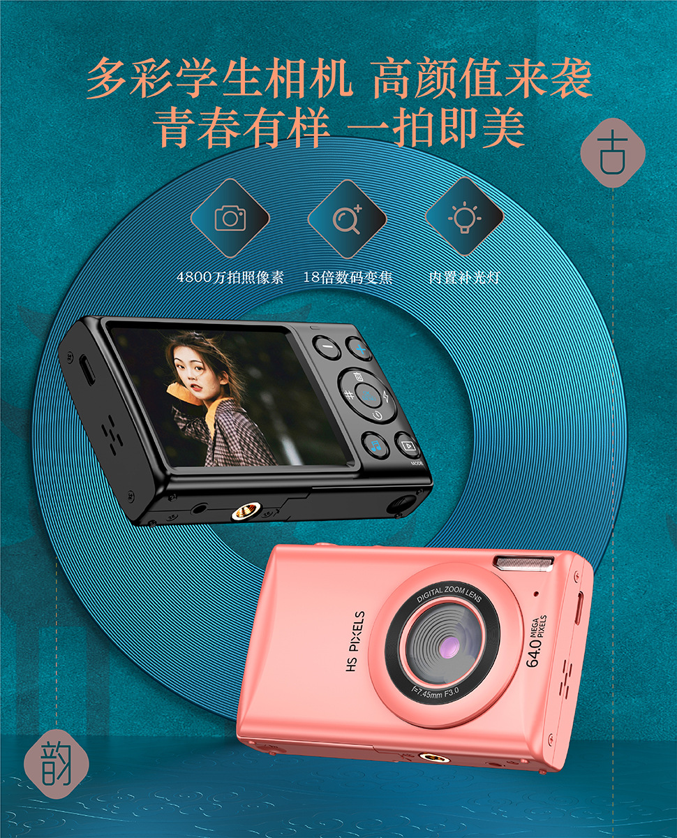 국경 새로운 cd 높은 픽셀 4K 휴대용 학생 복고풍 다기능 음악 디지털 카드 카메라 엔트리 레벨스토어 가기