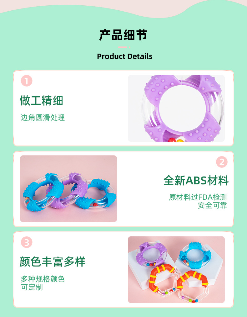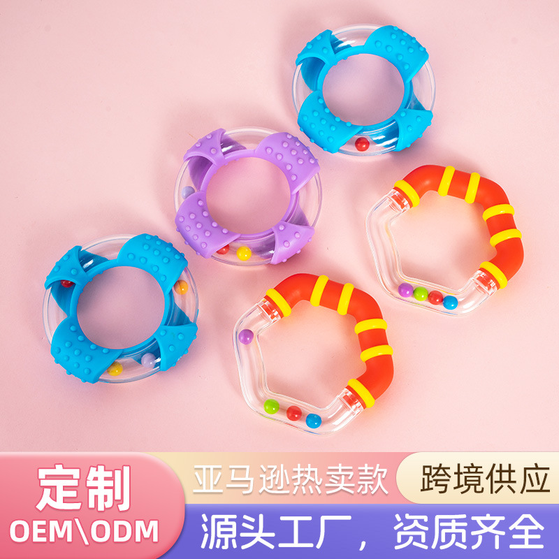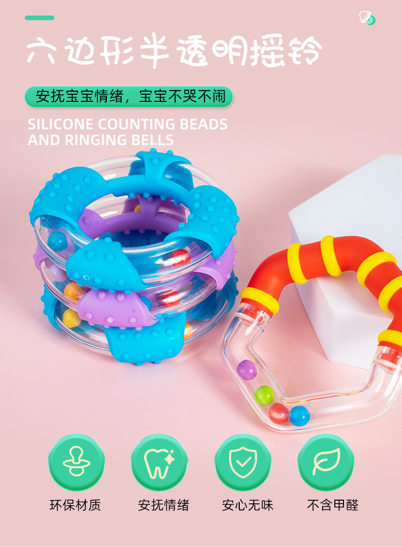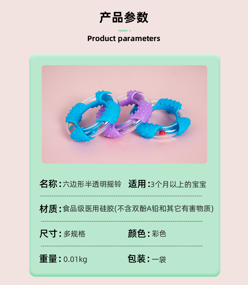 맞춤형 아기 딸랑이 아기 진정 육각형 반투명 반지 어린이 계몽 조기 교육 교육 장난감 딸랑이