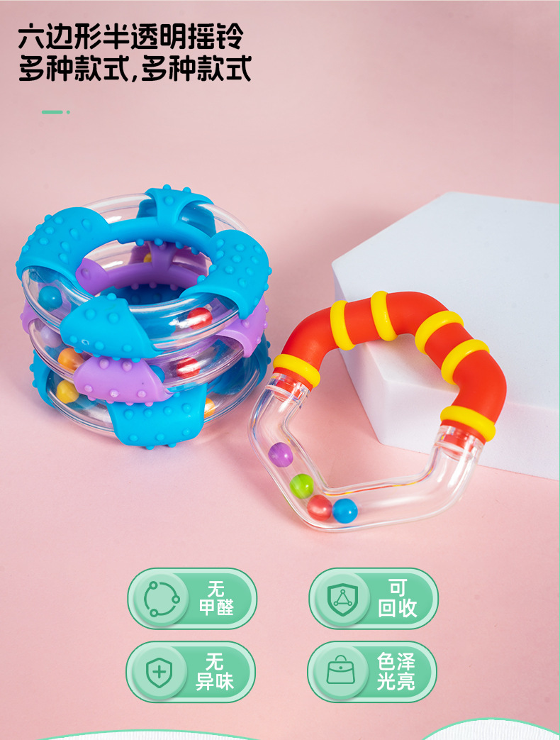 맞춤형 아기 딸랑이 아기 진정 육각형 반투명 반지 어린이 계몽 조기 교육 교육 장난감 딸랑이스토어 가기