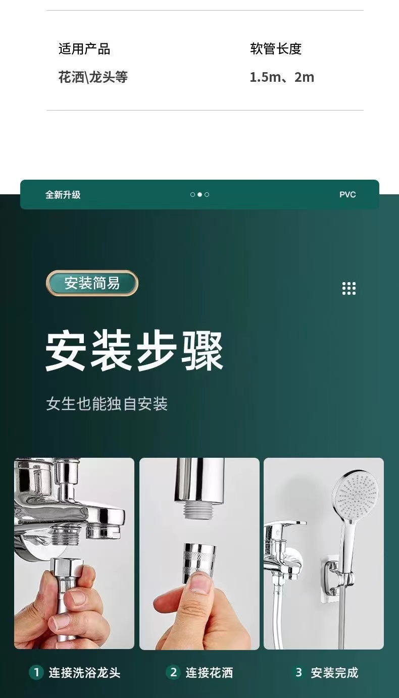 맞춤형 PVC 샤워 호스 온수기 고무 플라스틱 수도관 레인 샤워 노즐 샤워 파이프 1.5 미터스토어 가기