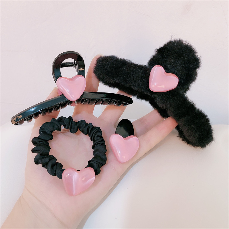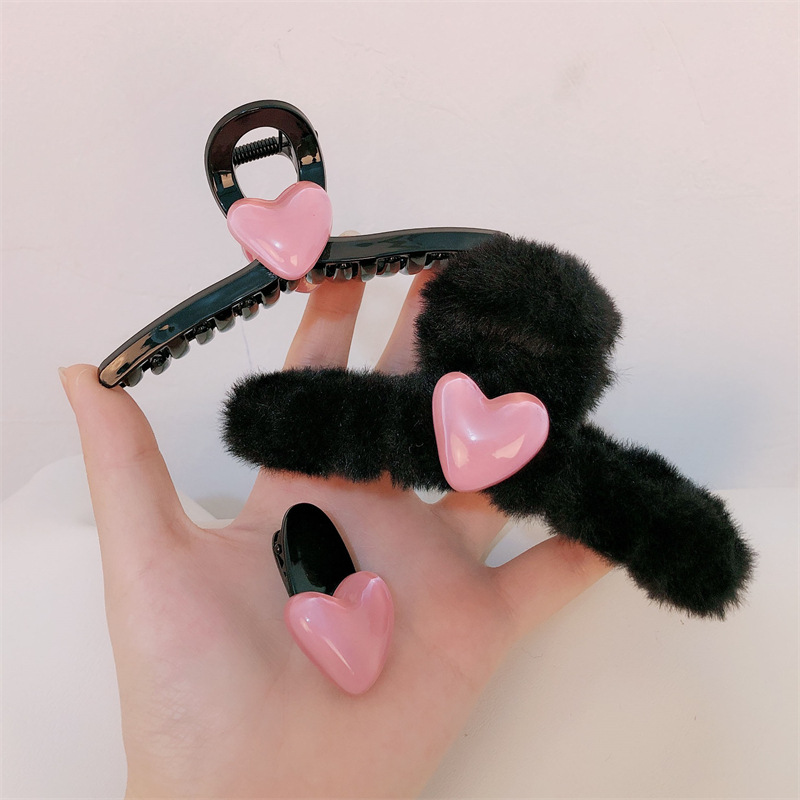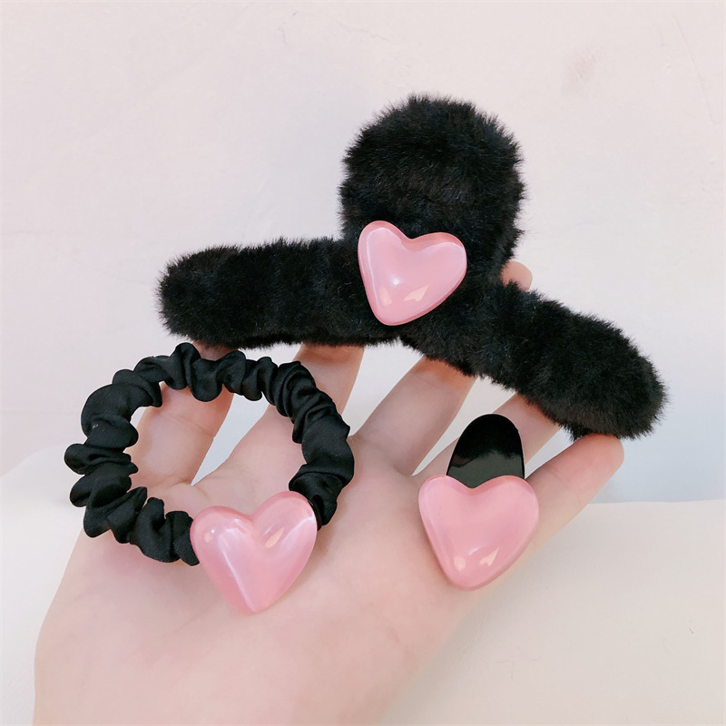 달콤한 소녀 핑크 사랑스러운 머리핀 머리 반지 가을과 겨울 봉제 머리 클립 귀여운 머리띠 앞머리 클립 간단한 머리핀 머리 장식