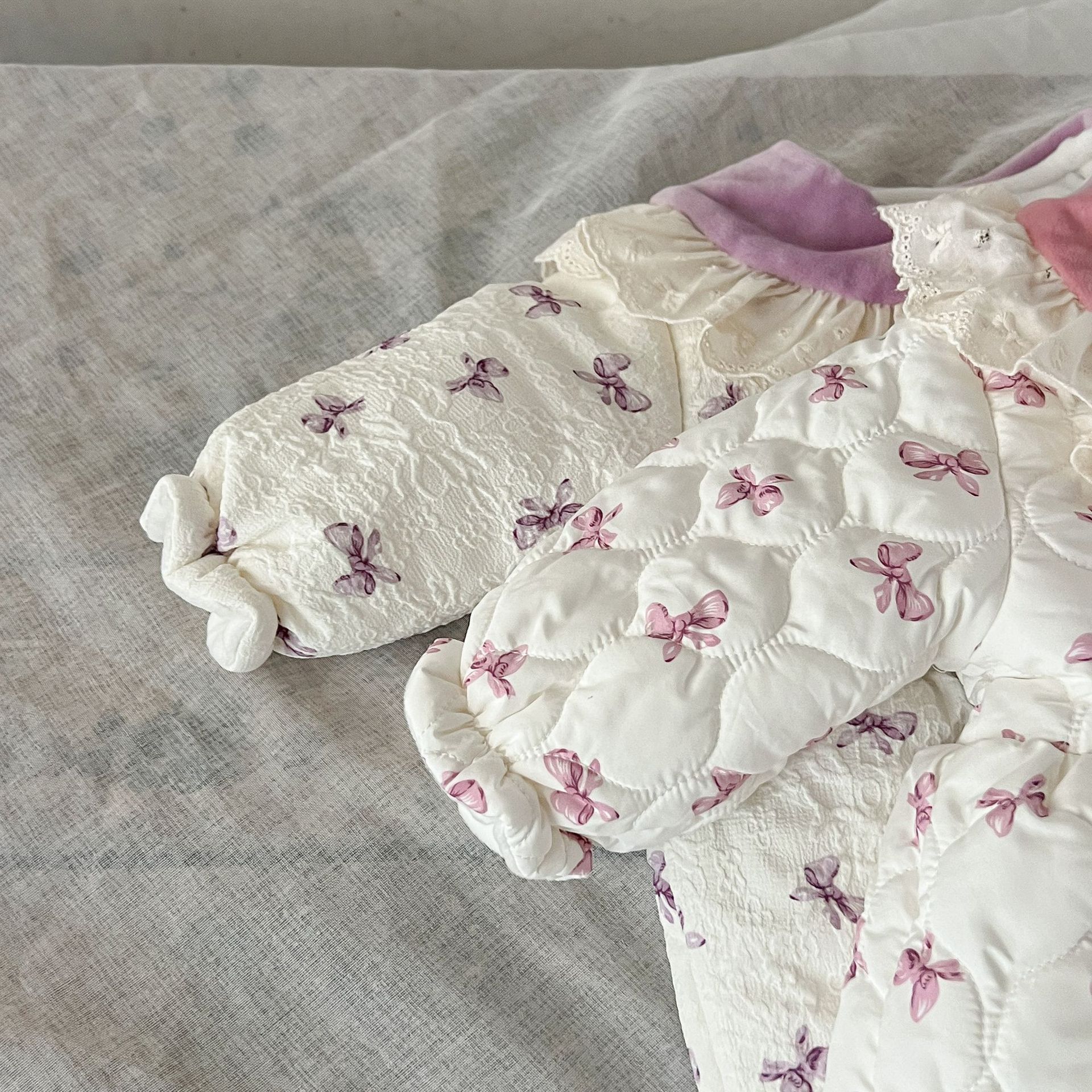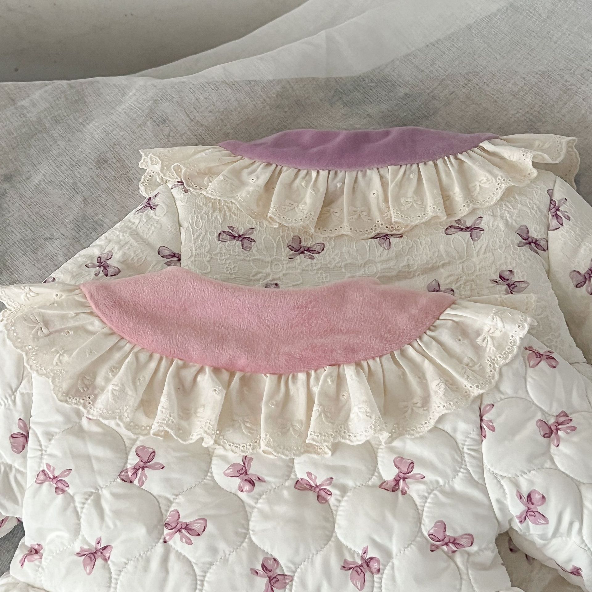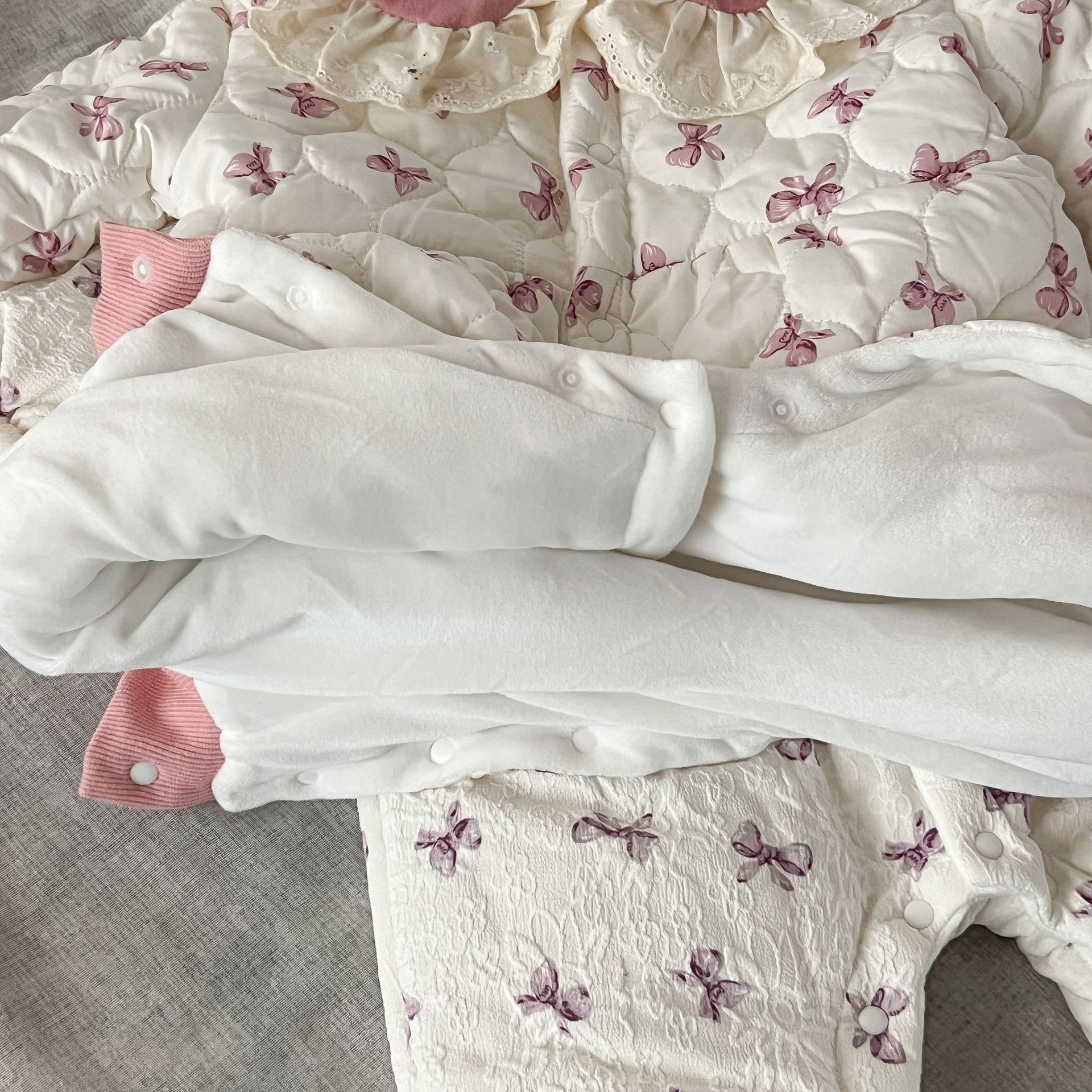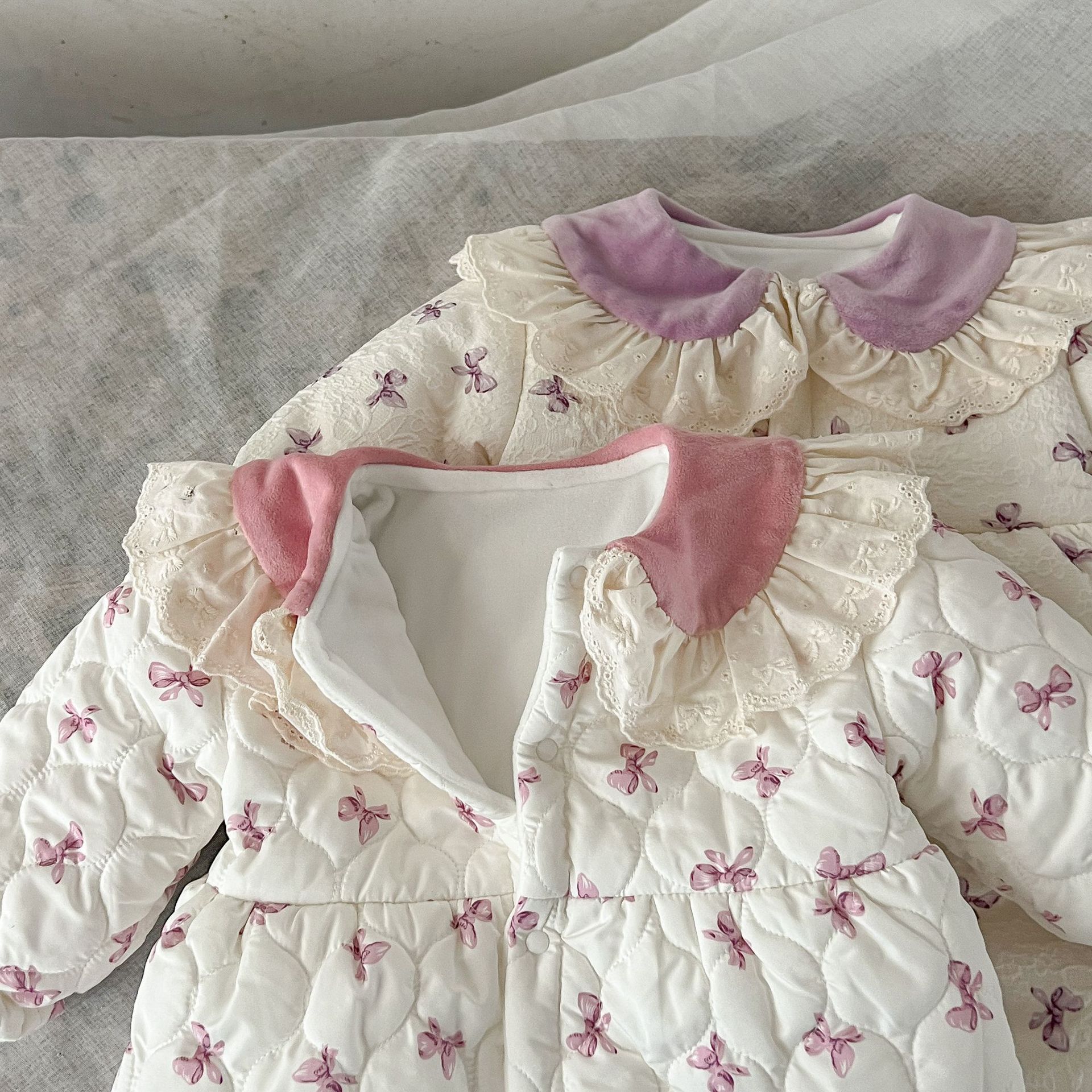 에 한국 스타일 여아 아기의 옷깃 레이스 누비 이불 기모 인쇄 면 패딩 등산 신생아 따뜻한 학카 유행