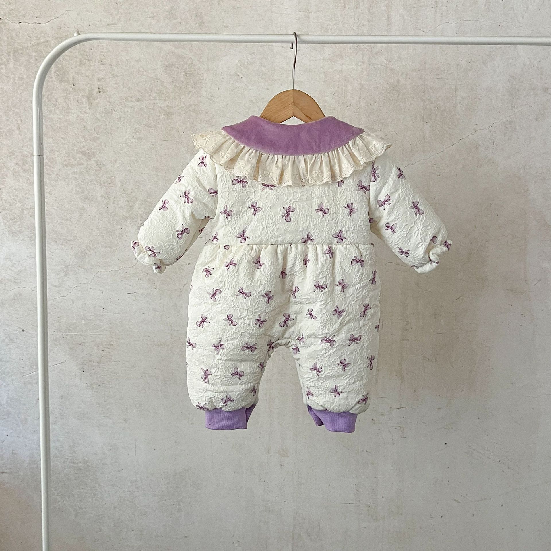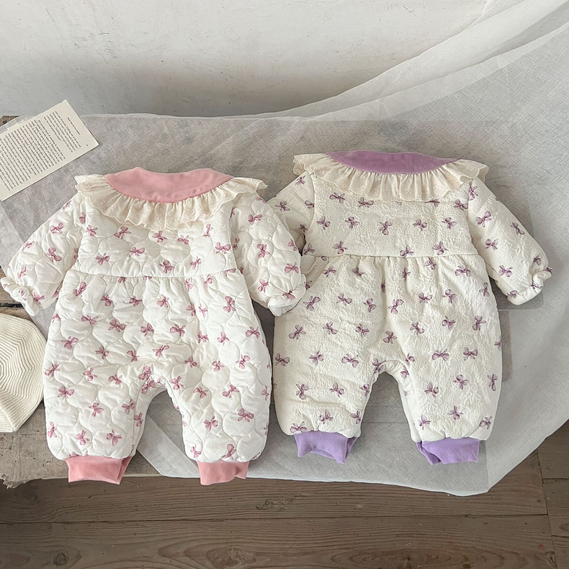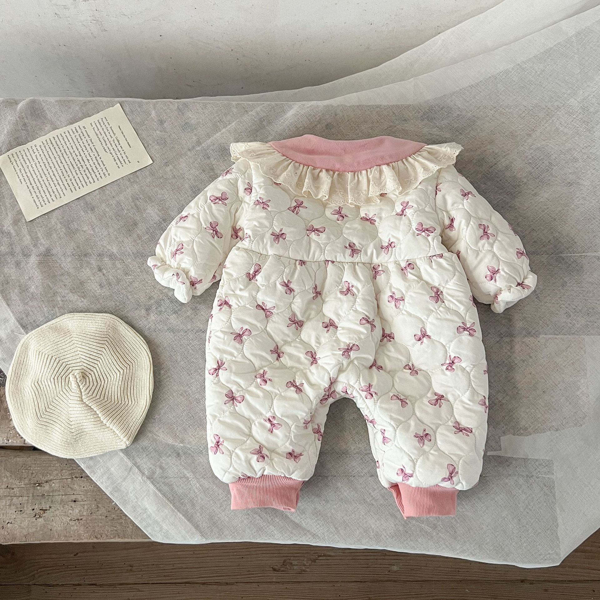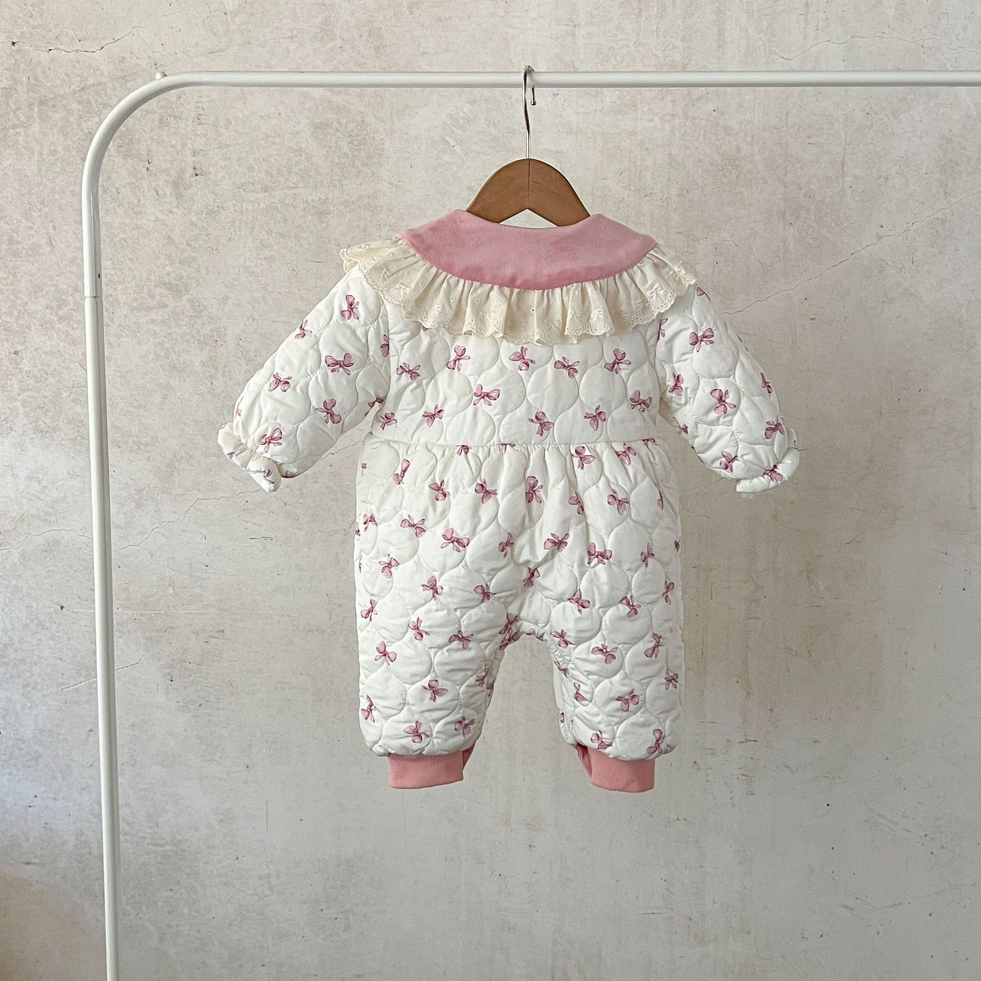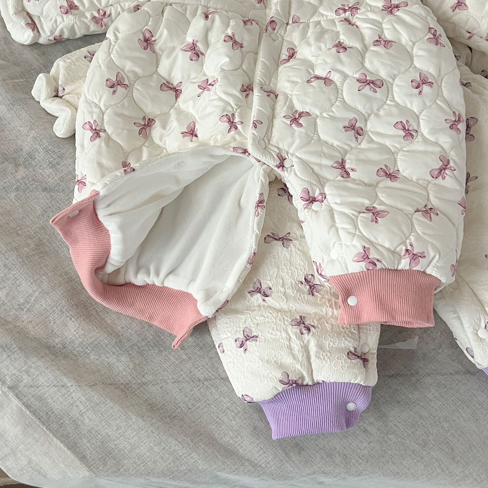에 한국 스타일 여아 아기의 옷깃 레이스 누비 이불 기모 인쇄 면 패딩 등산 신생아 따뜻한 학카 유행