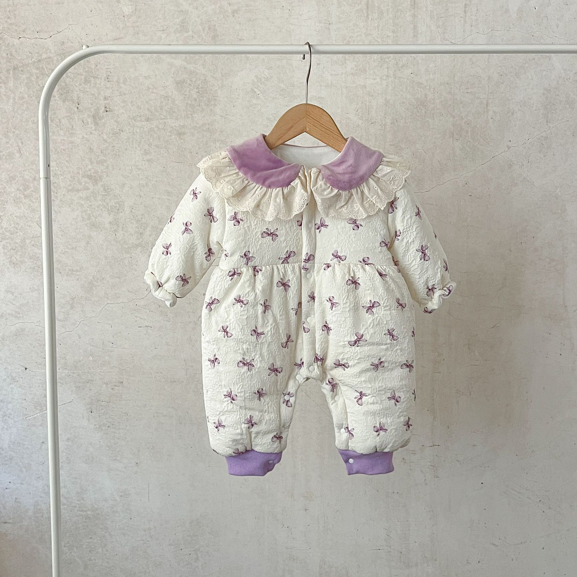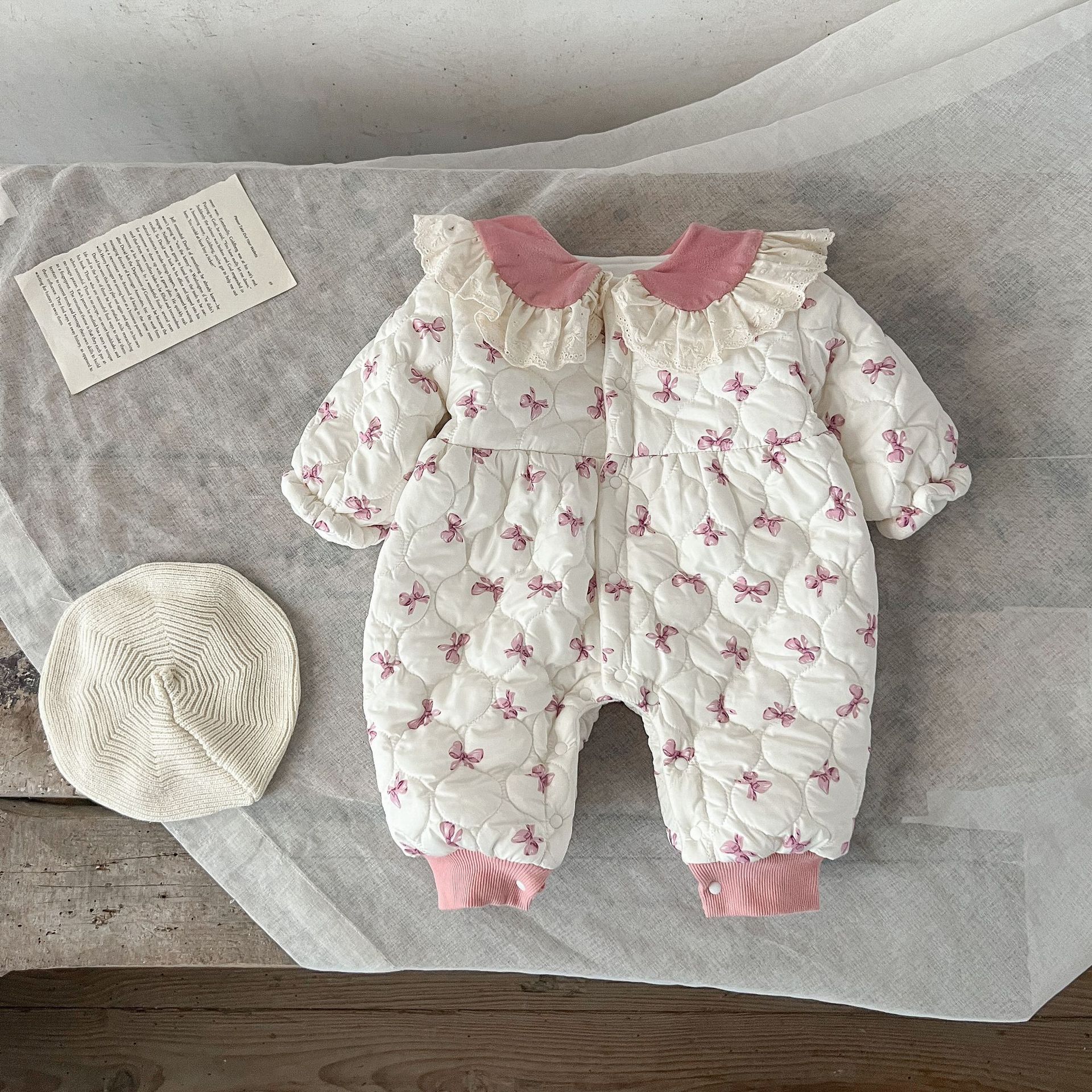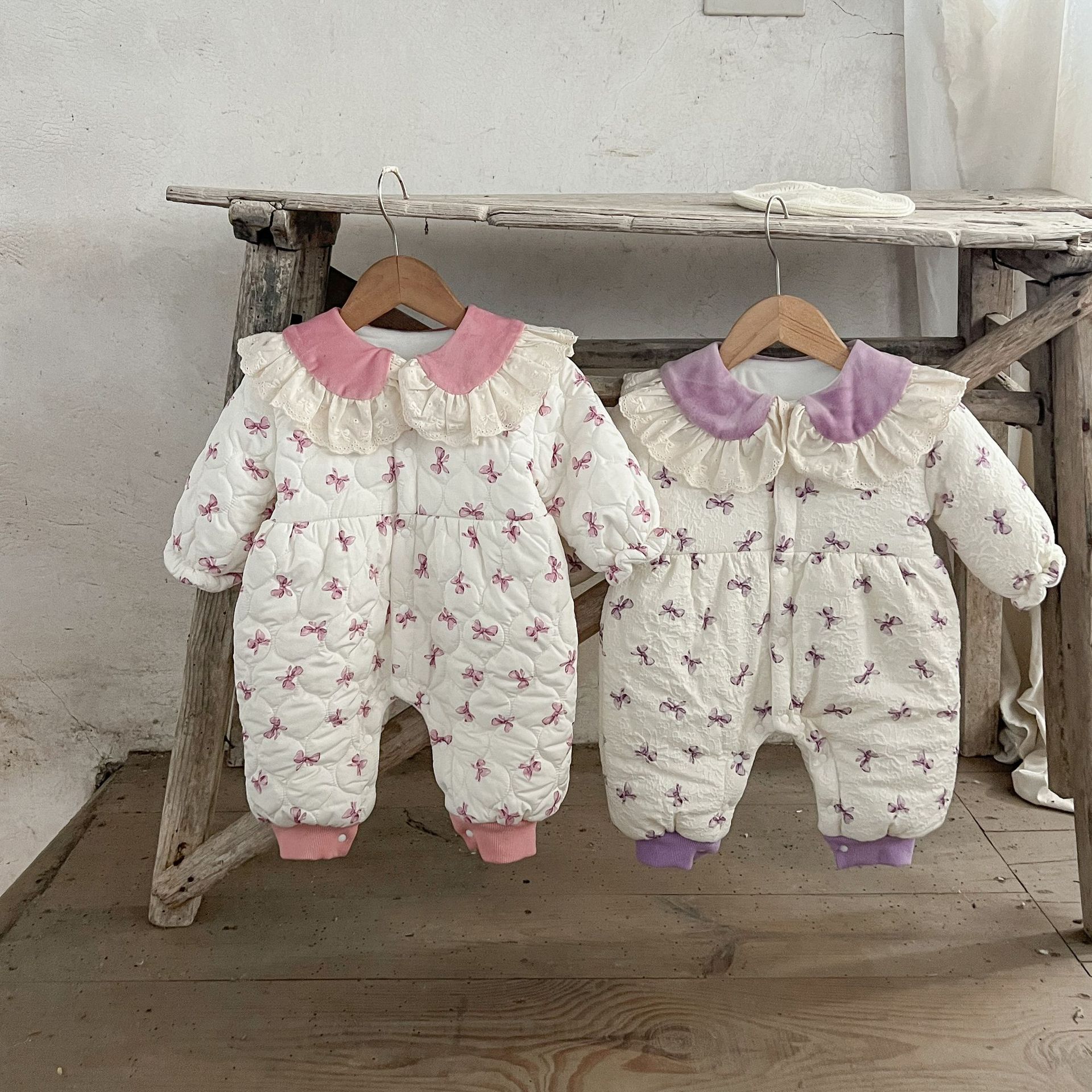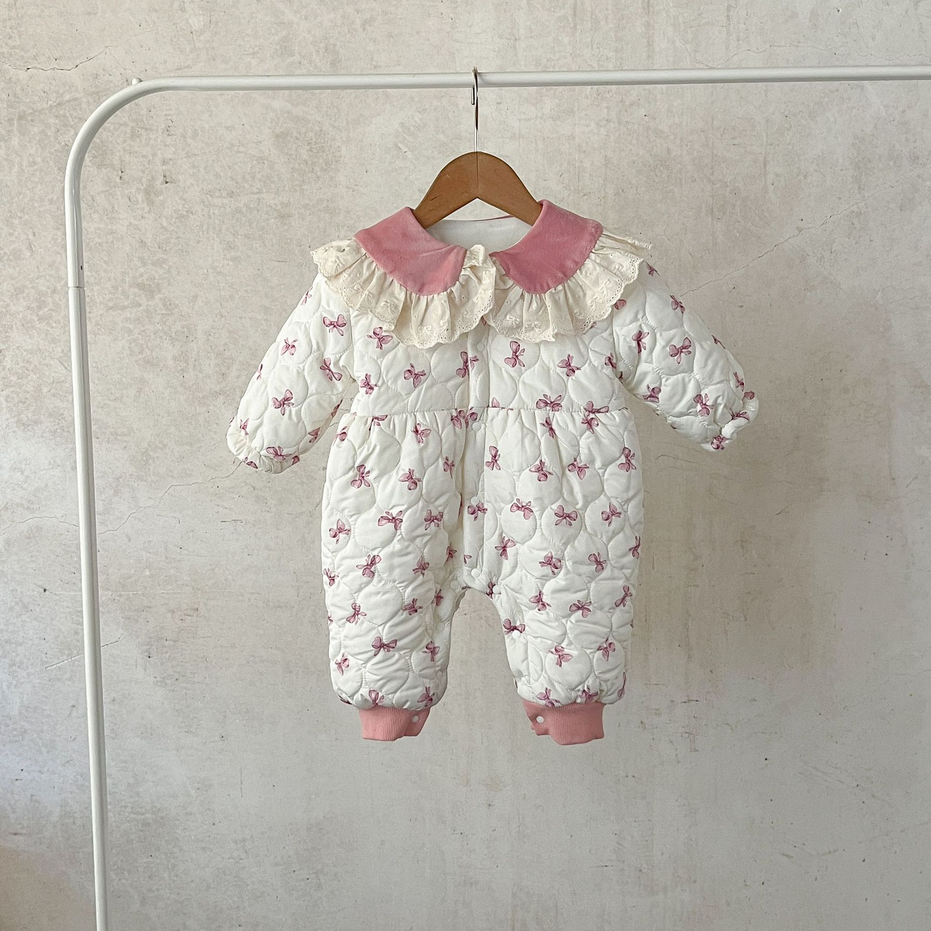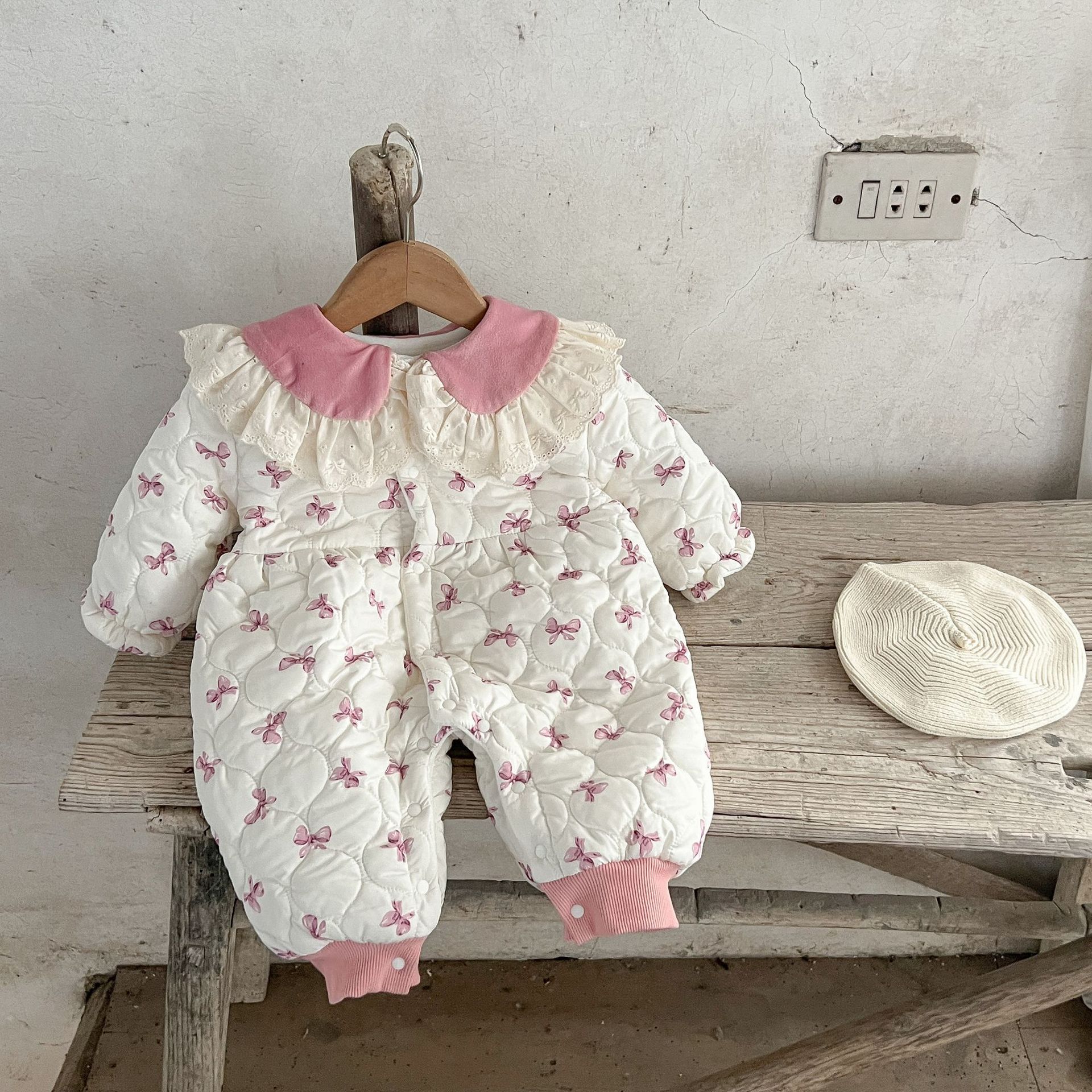 에 한국 스타일 여아 아기의 옷깃 레이스 누비 이불 기모 인쇄 면 패딩 등산 신생아 따뜻한 학카 유행스토어 가기