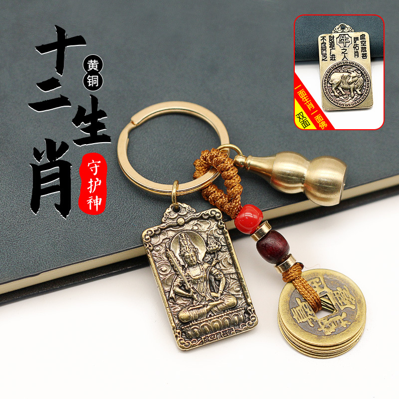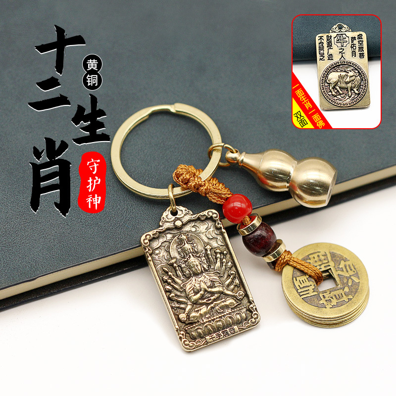 황동 새로운 여덟 후원자 세인트 Benningfo 직사각형 조디악 조디악 키 체인 펜던트 하나 조디악스토어 가기