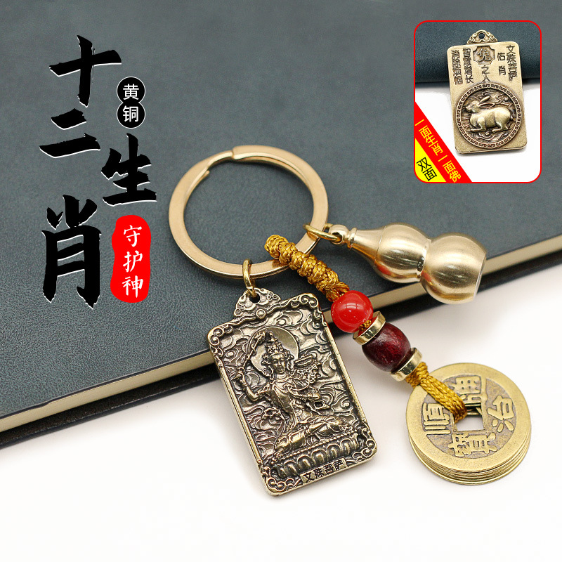• 송곳니 브랜드 만주스리 보살상 + 조롱박 + 다섯 황제 돈 다크 브라운 밧줄 [토끼]