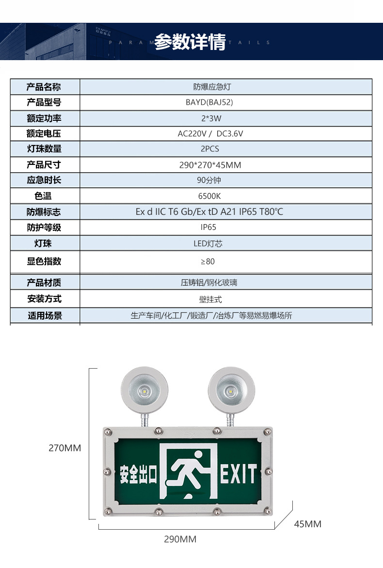 Edypson BAYD led 더블 헤드 폭발 방지 비상 출구 표시기 화재 조명 식별 램프스토어 가기