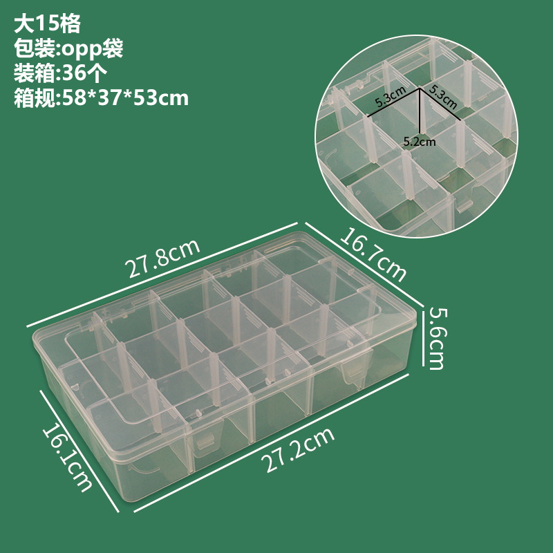 15 그리드 투명 플라스틱 상자 장식 저장 상자 삽입 조립 DIY 수제 보석 낚시 기어 문화 창조적 인 포장 상자스토어 가기