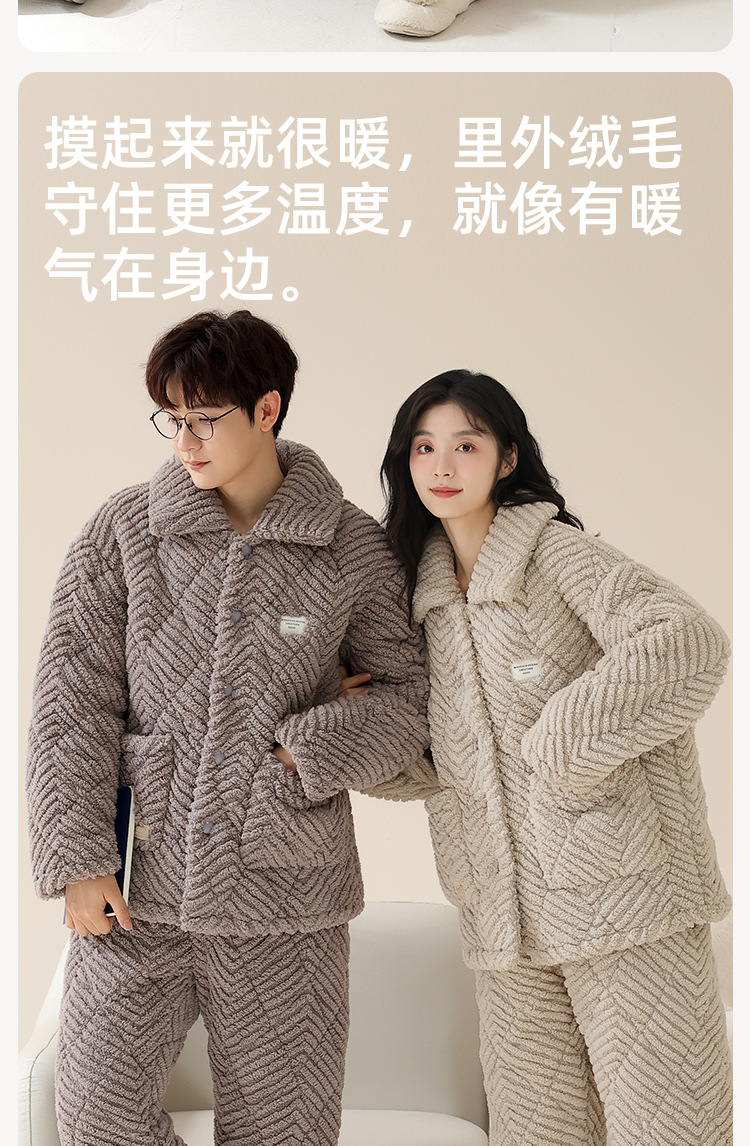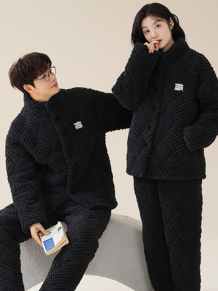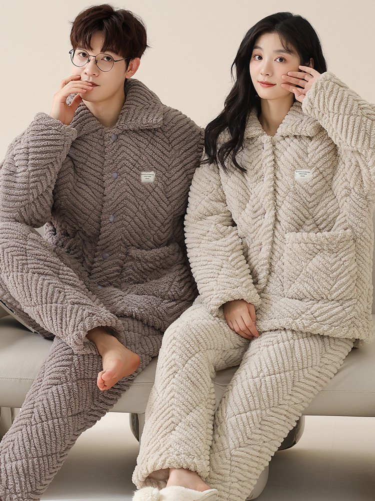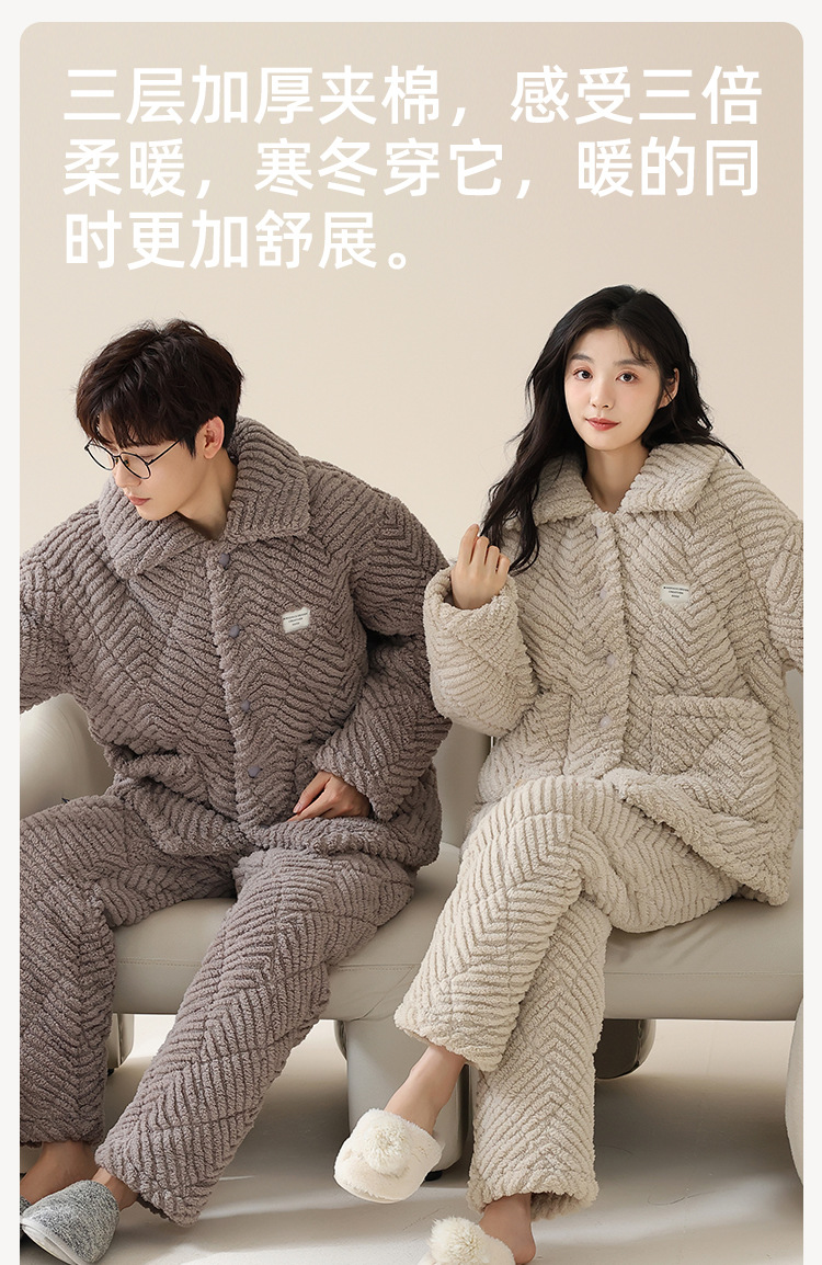 순면 3 층 두꺼운 퀼트 잠옷 여자의 겨울 기모 착용 할 수있는 가을과 겨울 커플의 가정 의류 남자의 스타일스토어 가기