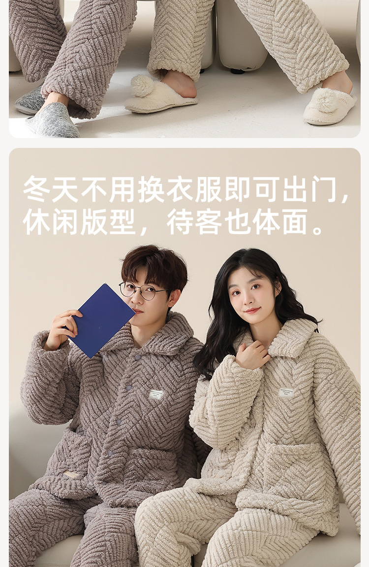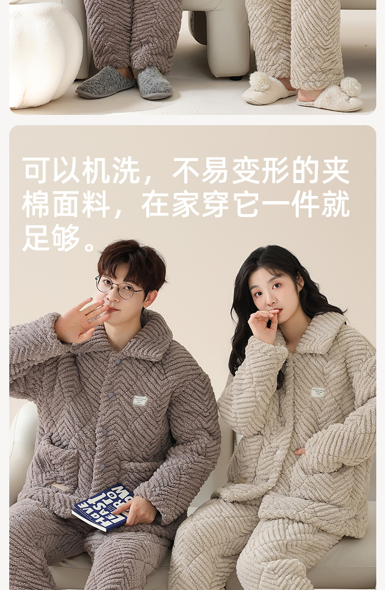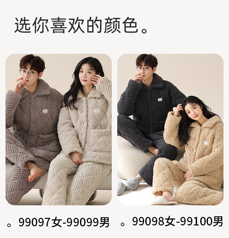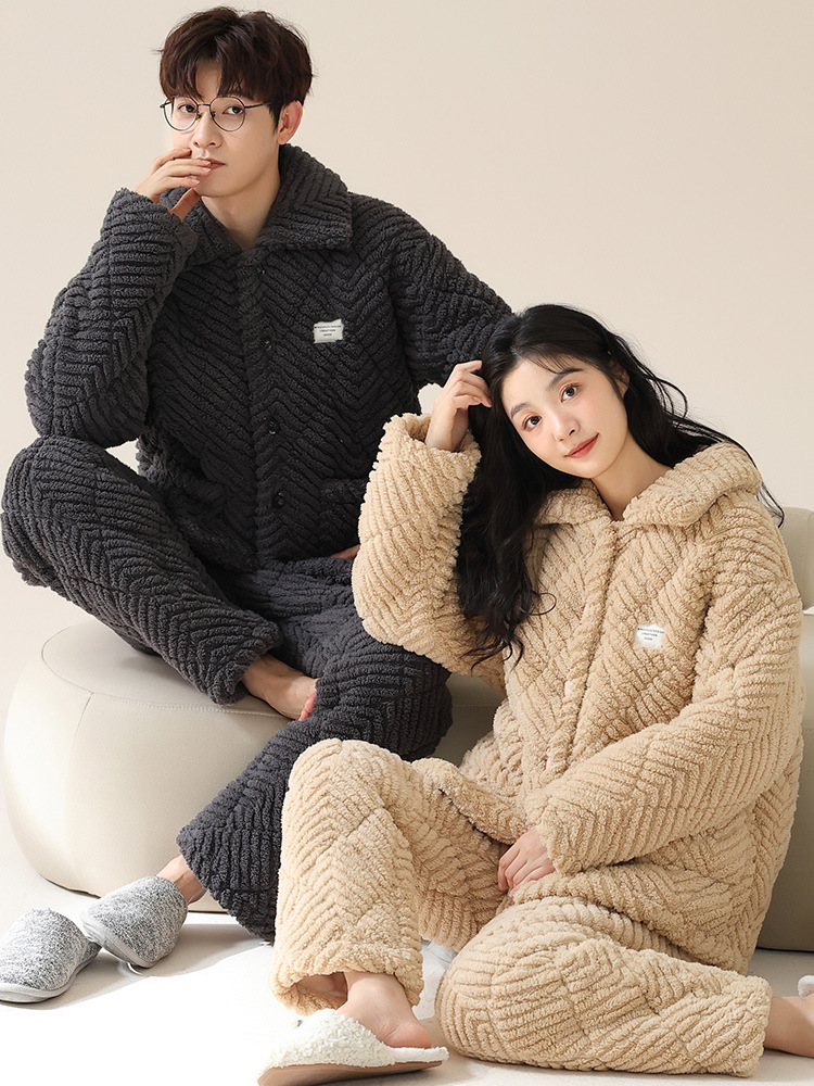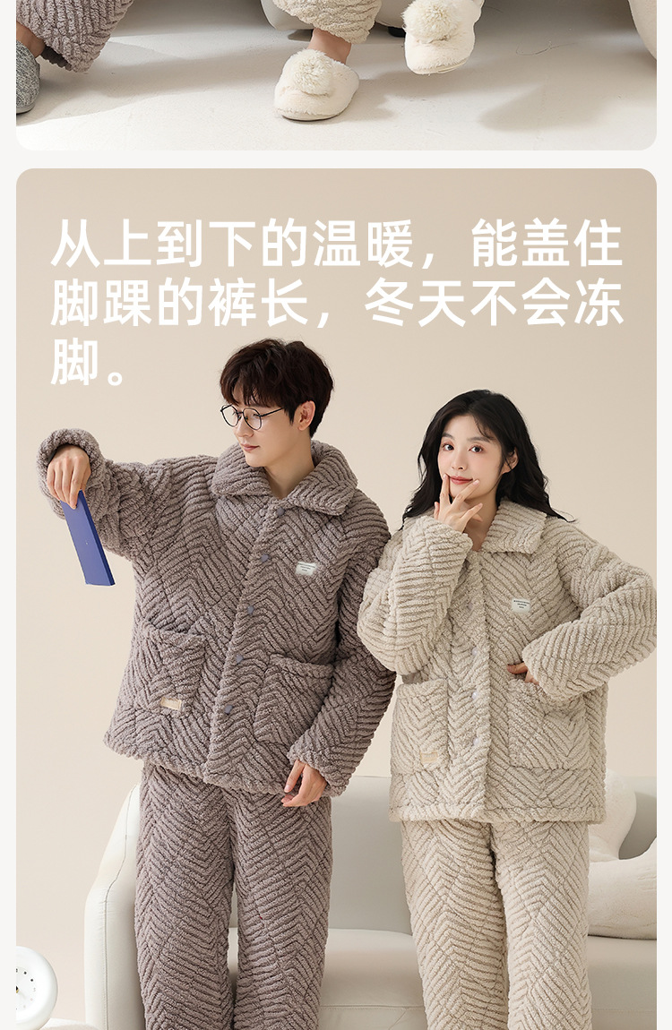 순면 3 층 두꺼운 퀼트 잠옷 여자의 겨울 기모 착용 할 수있는 가을과 겨울 커플의 가정 의류 남자의 스타일스토어 가기