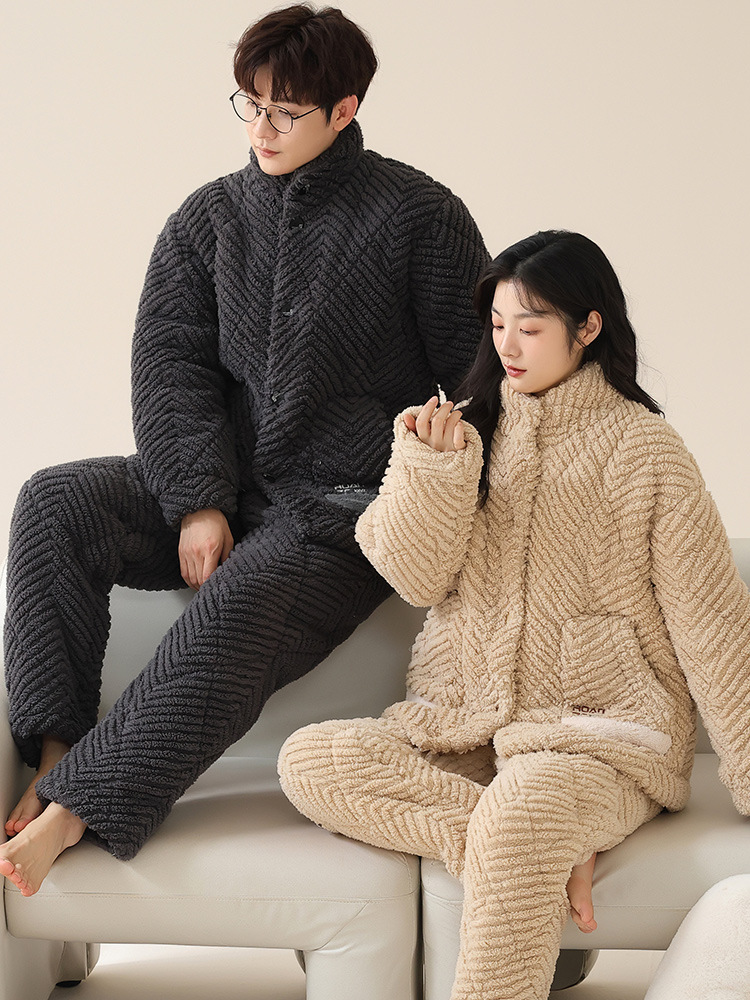 순면 3 층 두꺼운 퀼트 잠옷 여자의 겨울 기모 착용 할 수있는 가을과 겨울 커플의 가정 의류 남자의 스타일