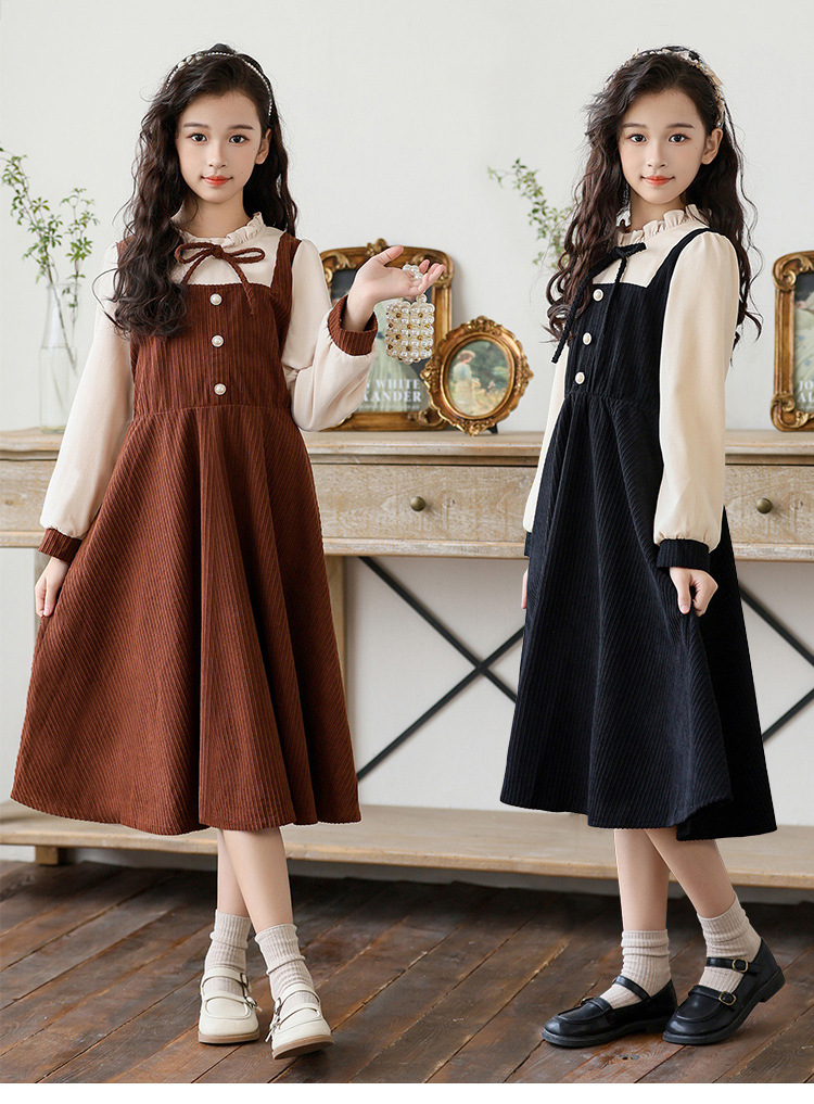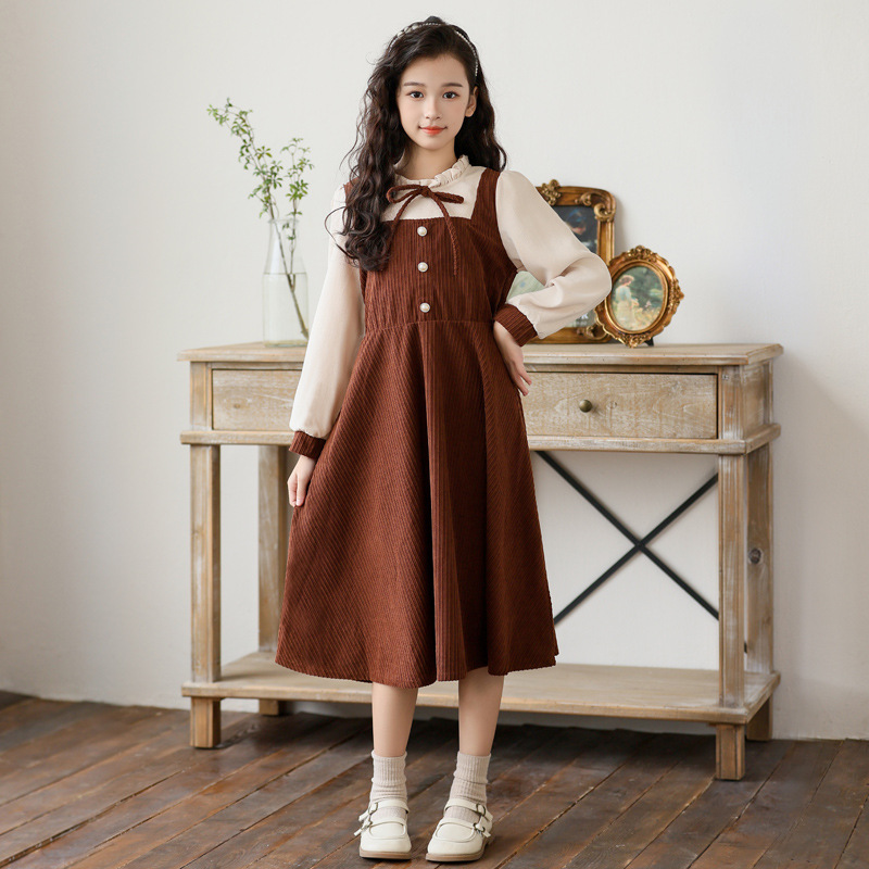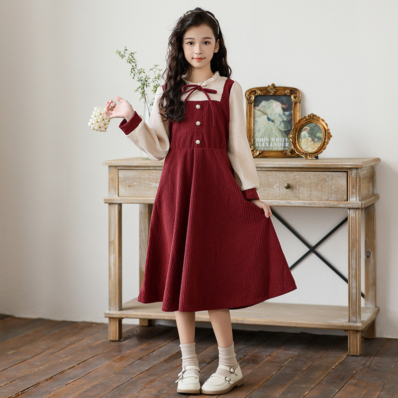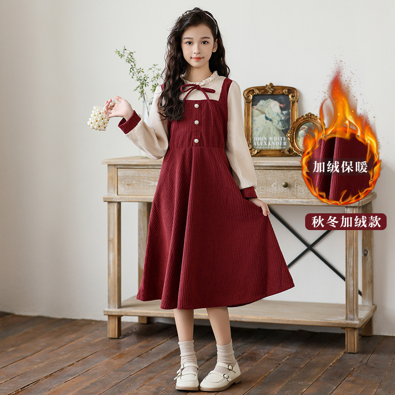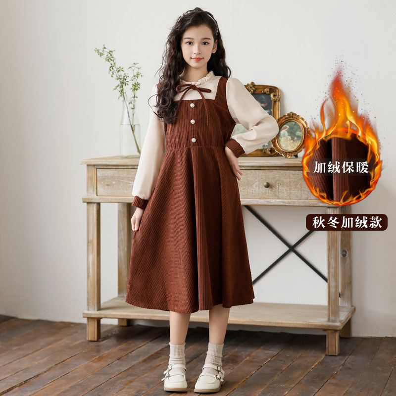소녀 가을과 겨울 원피스 겨울 기모 공주 원피스 2023 새로운 빈티지 아카데미 스타일 가을과 겨울 스커트스토어 가기