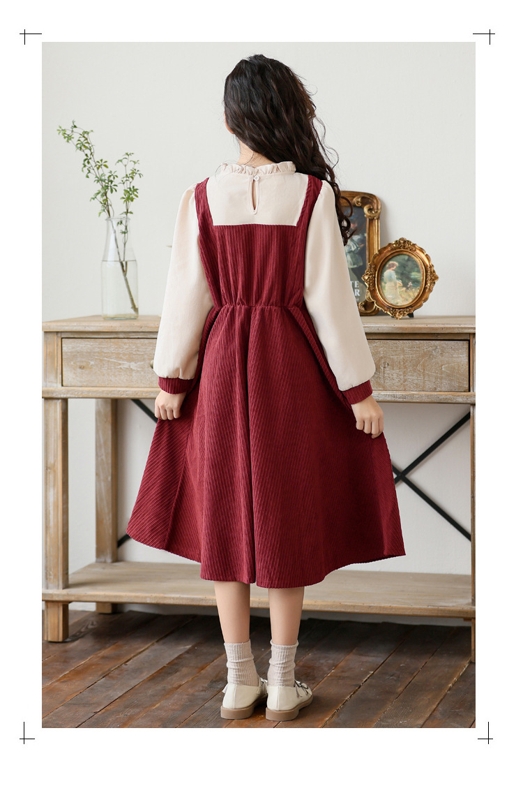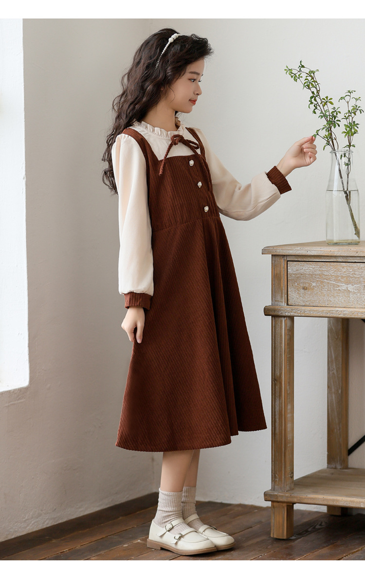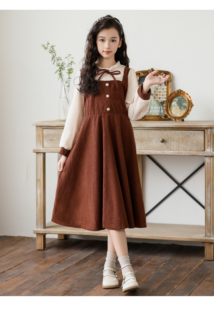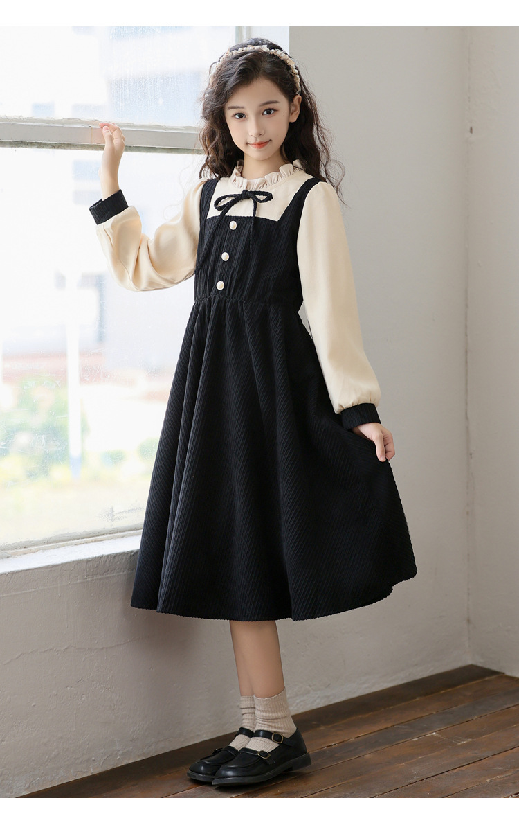 소녀 가을과 겨울 원피스 겨울 기모 공주 원피스 2023 새로운 빈티지 아카데미 스타일 가을과 겨울 스커트스토어 가기