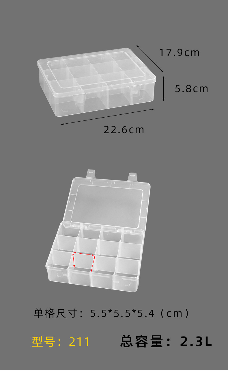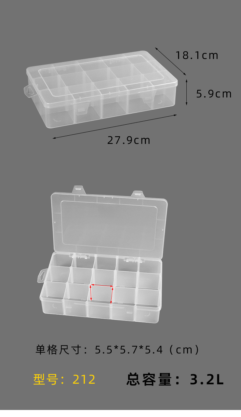 투명 저장 상자 플라스틱 스낵 상자 저장 상자 보석 상자 도구 상자 저장 10 15 24 그리드 낚시 도구 상자스토어 가기