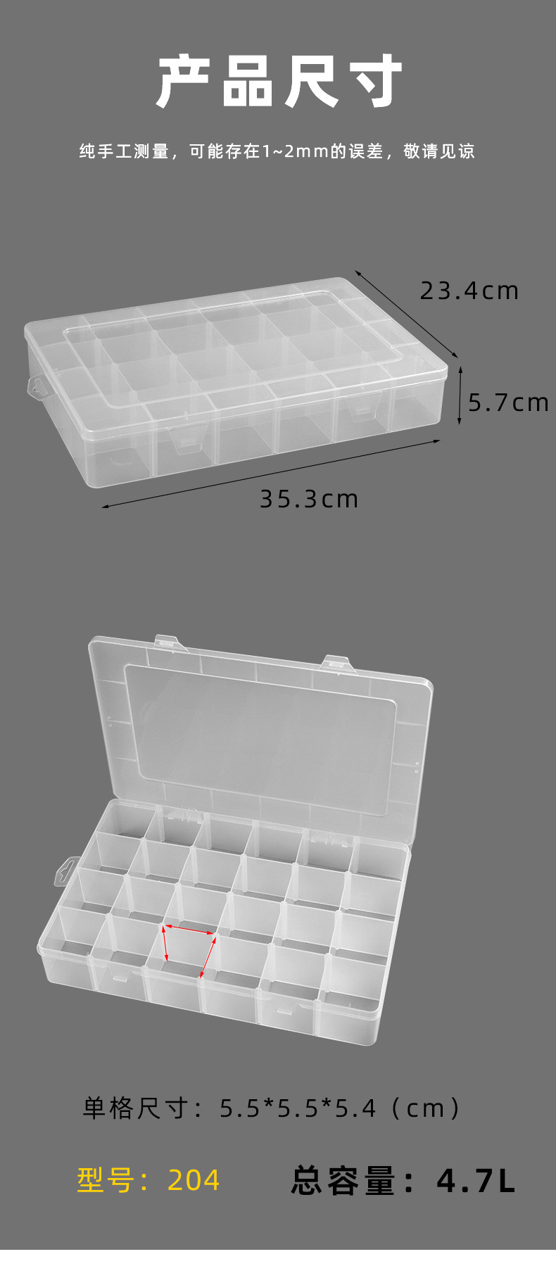 투명 저장 상자 플라스틱 스낵 상자 저장 상자 보석 상자 도구 상자 저장 10 15 24 그리드 낚시 도구 상자
