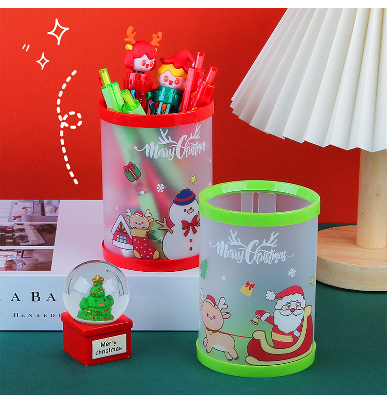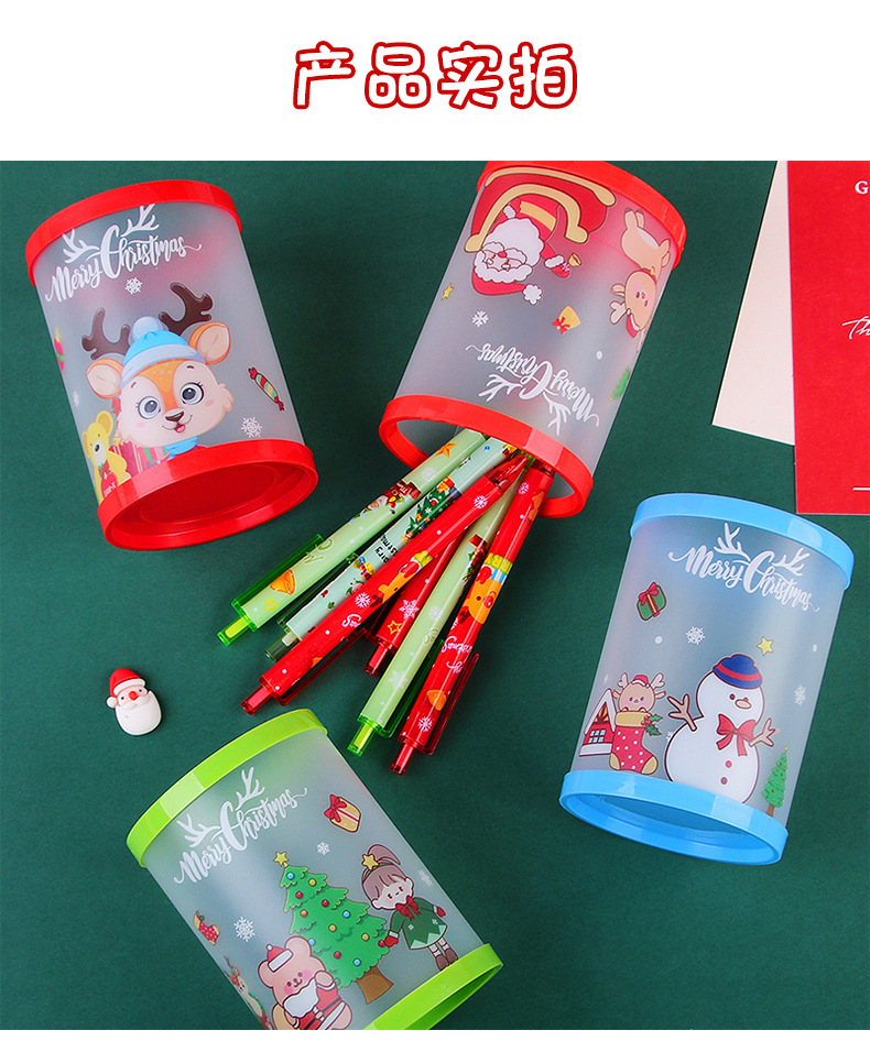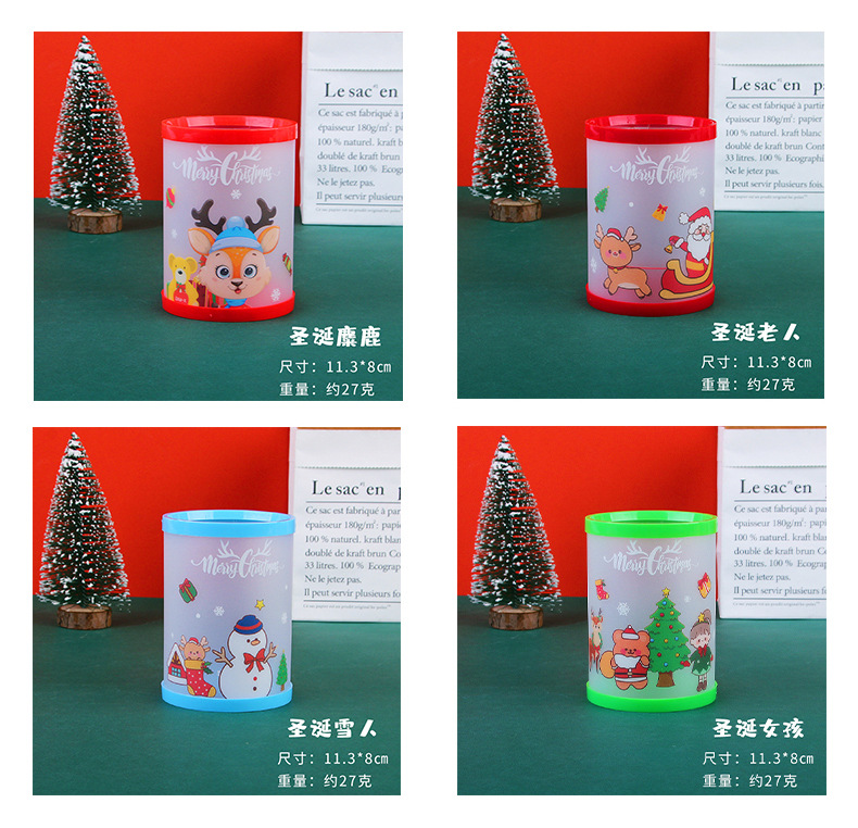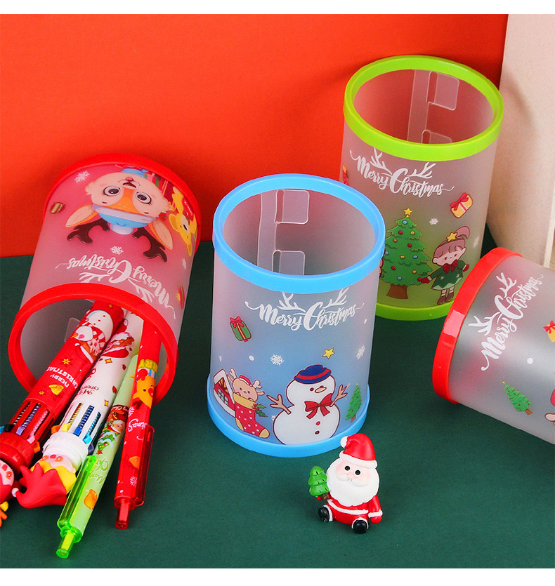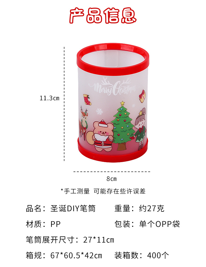 만화 크리스마스 DIY 접이식 펜 용기 유치원 휴일 선물 학생 학습 문구 DIY 조립 투명 펜 용기스토어 가기
