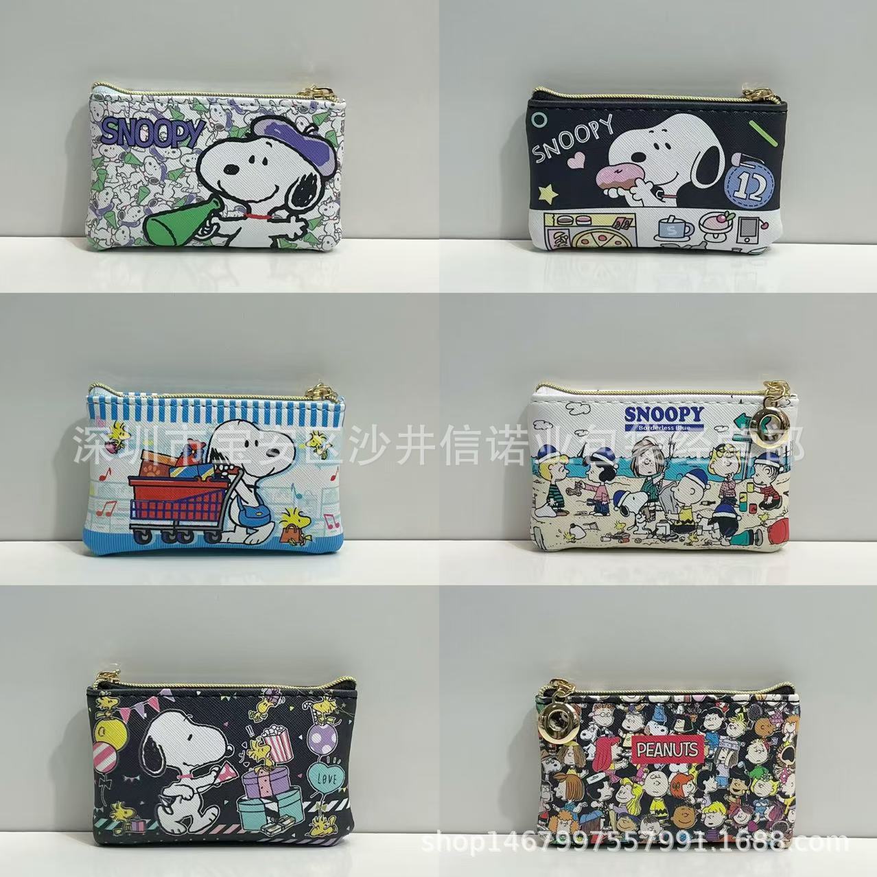새로운 만화 못생긴 물고기 + 스누피 플랫 소형 지갑 카드 홀더 동전 동전 가방 간단한 소형 보관 이어폰 가방스토어 가기