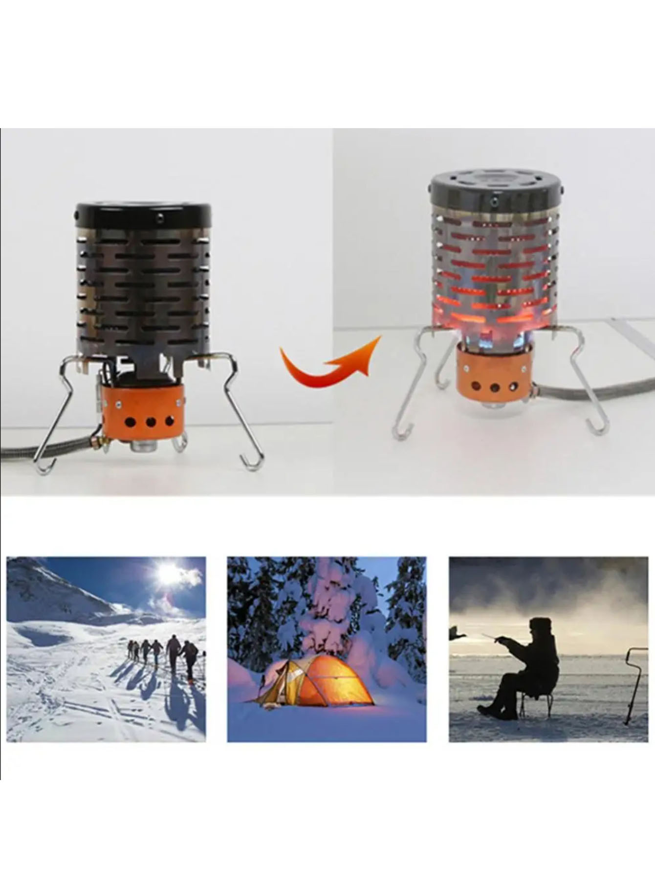 뜨거운 판매 야외 캠핑 난방 후드 스토브 미니 스테인레스 스틸 휴대용 난방 후드 캠핑 텐트 카드 스토브 히터