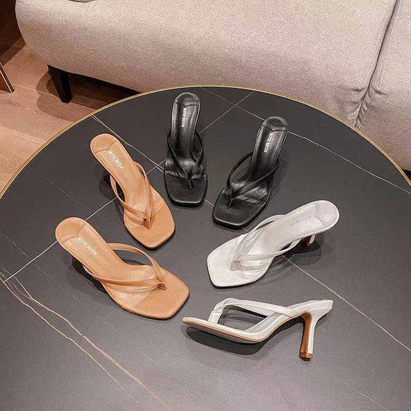 블랙 끈 샌들 여성용 플립 플롭 하이힐 고급 힐 플립 플롭 외부 유행 모든 매치 슬리퍼 스퀘어 토 샌들 여름
