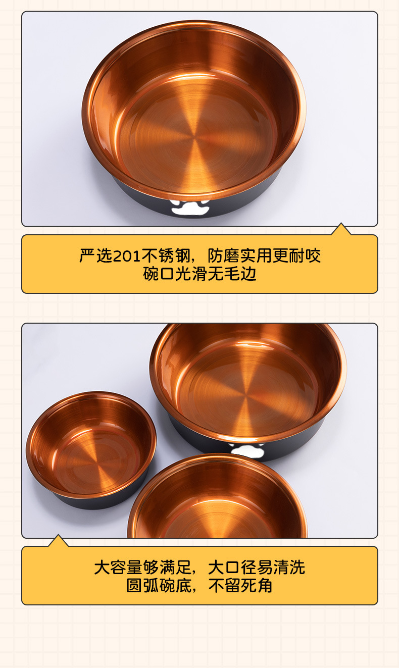공장 다이렉트 애완 동물 더블 스테인레스 고양이 그릇 개 그릇 미끄럼 방지 낙하 방지 피더 노크 방지 개 사료 분지 도매