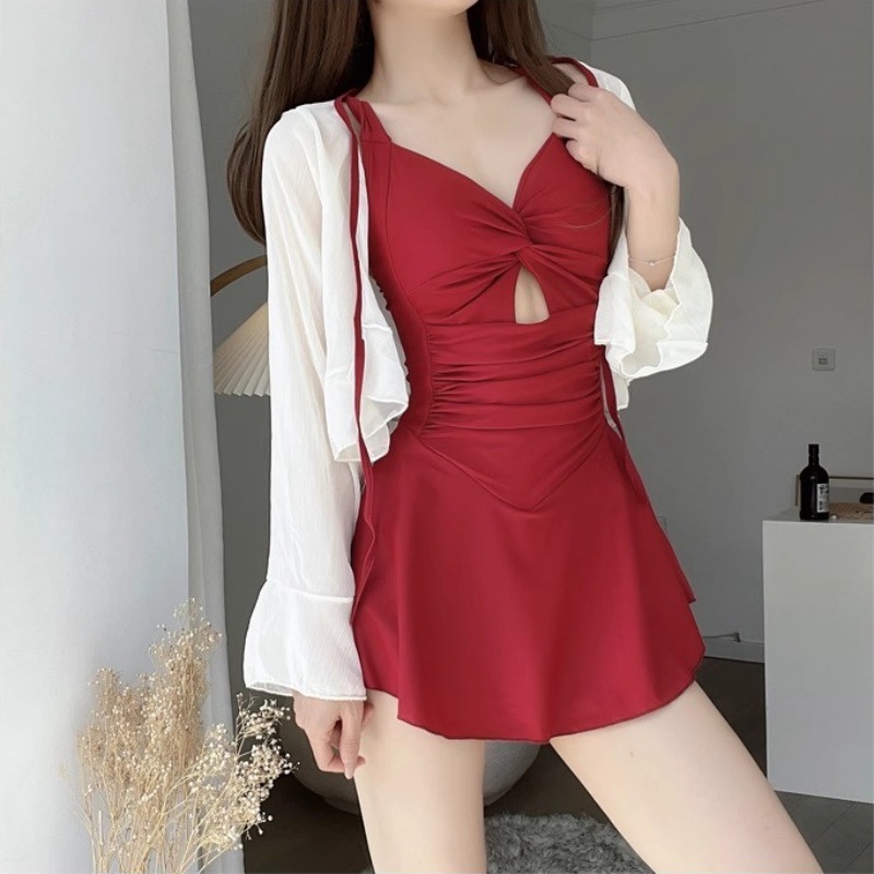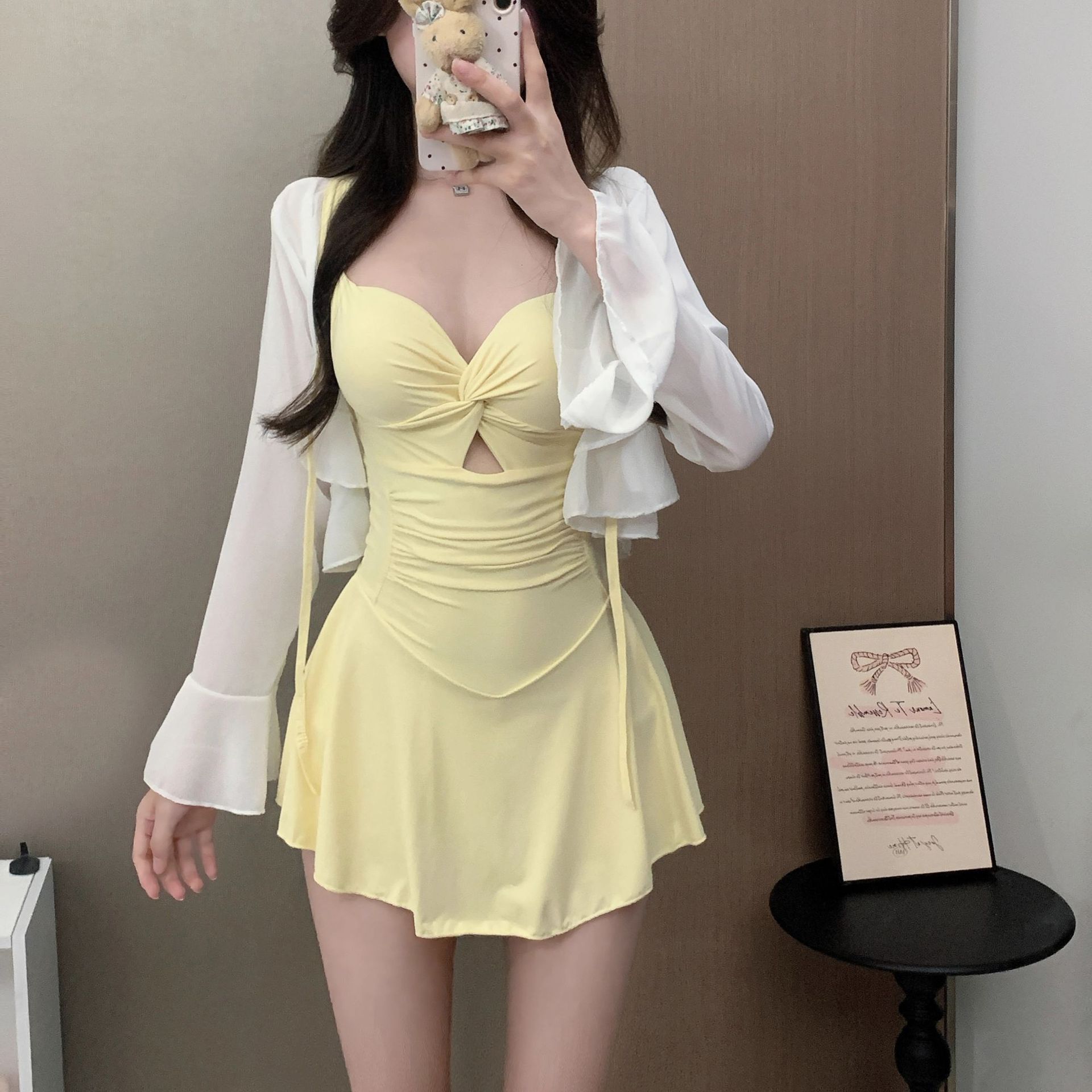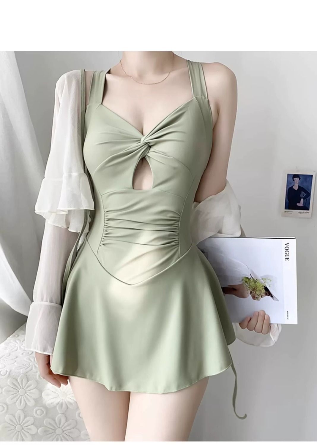 여성 수영복 커버업 2026년형 원피스 스커트 스타일 작은 가슴을 위한 신선한 디자인, 보정 효과, 배를 가려주는 온천 수영복스토어 가기