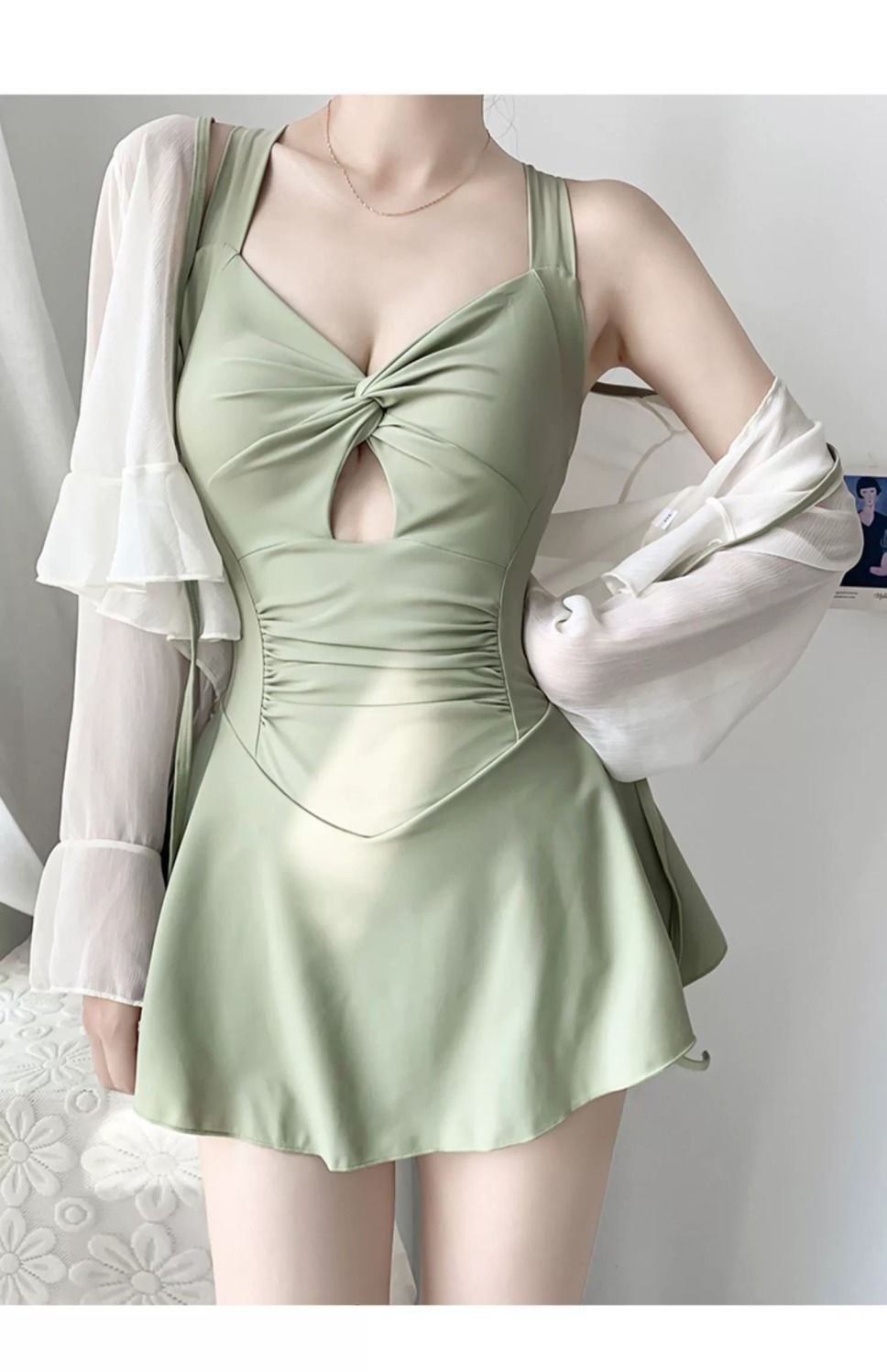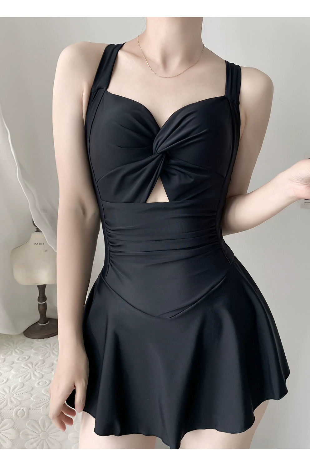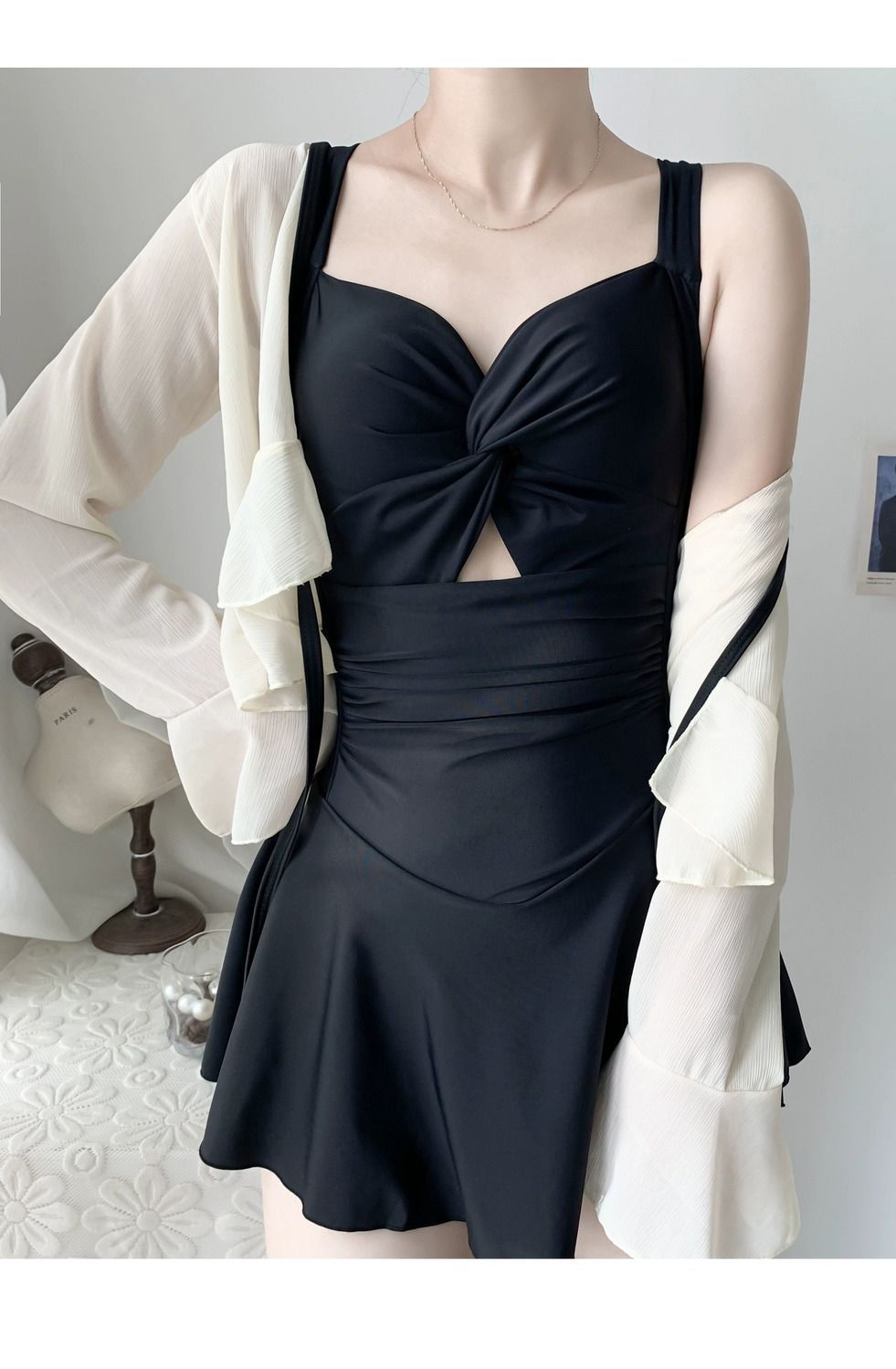 여성 수영복 커버업 2026년형 원피스 스커트 스타일 작은 가슴을 위한 신선한 디자인, 보정 효과, 배를 가려주는 온천 수영복스토어 가기