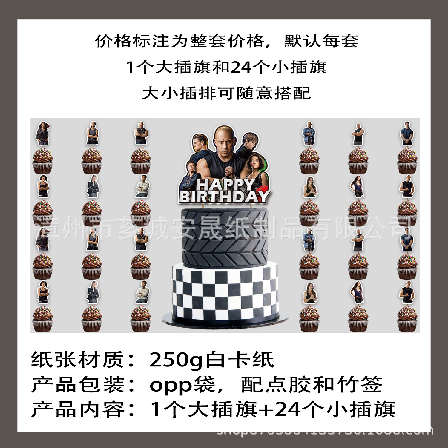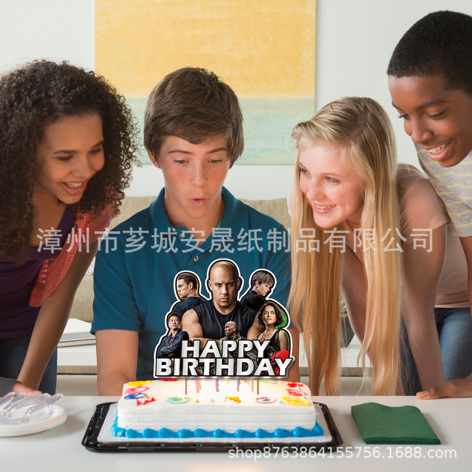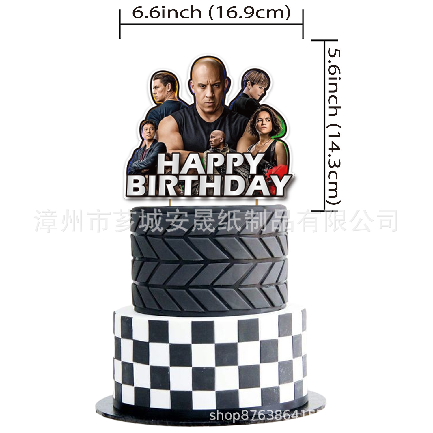 재고 빠르고 격렬한 테마 생일 파티 장식 생일 케이크 카드 크기 깃발 장식 용품스토어 가기