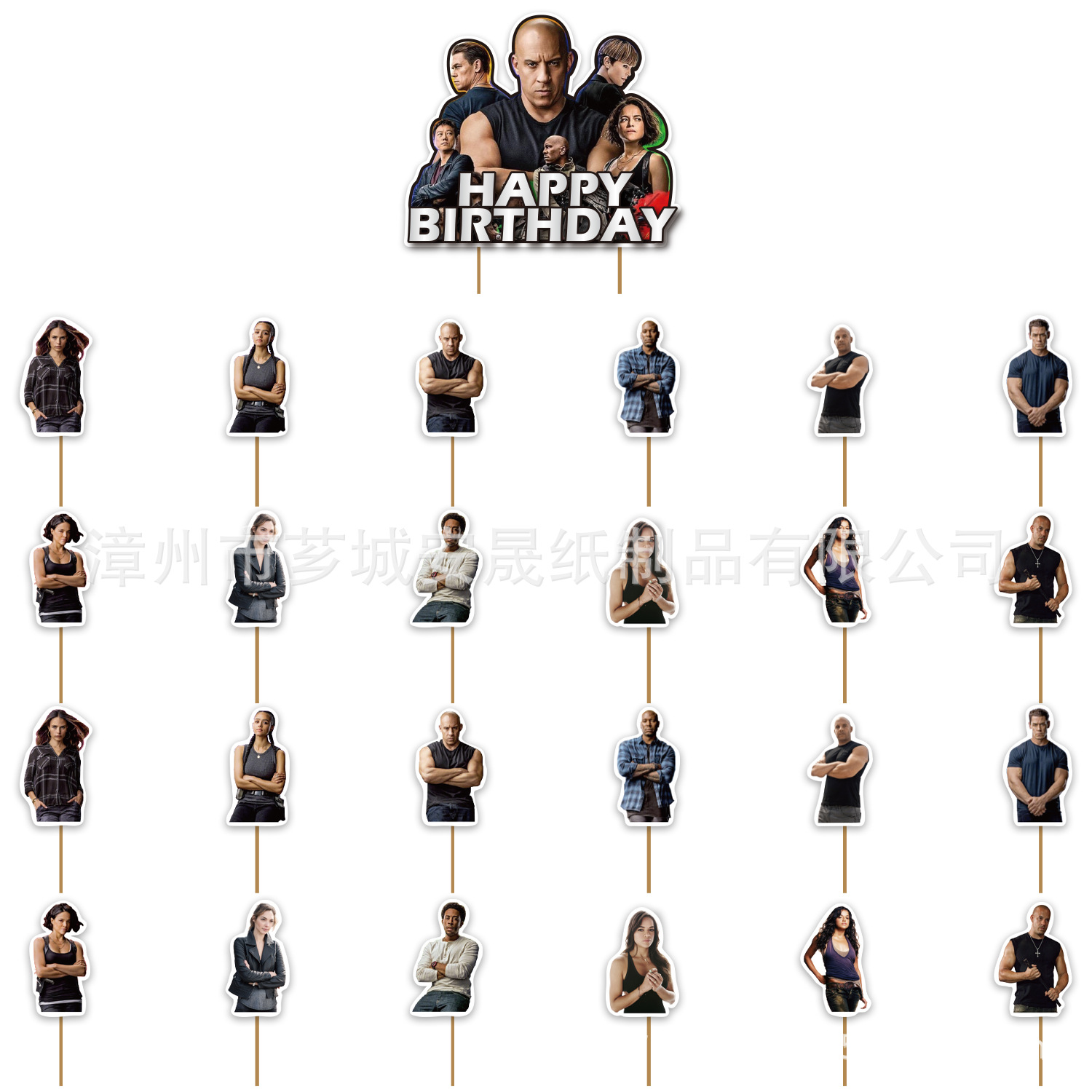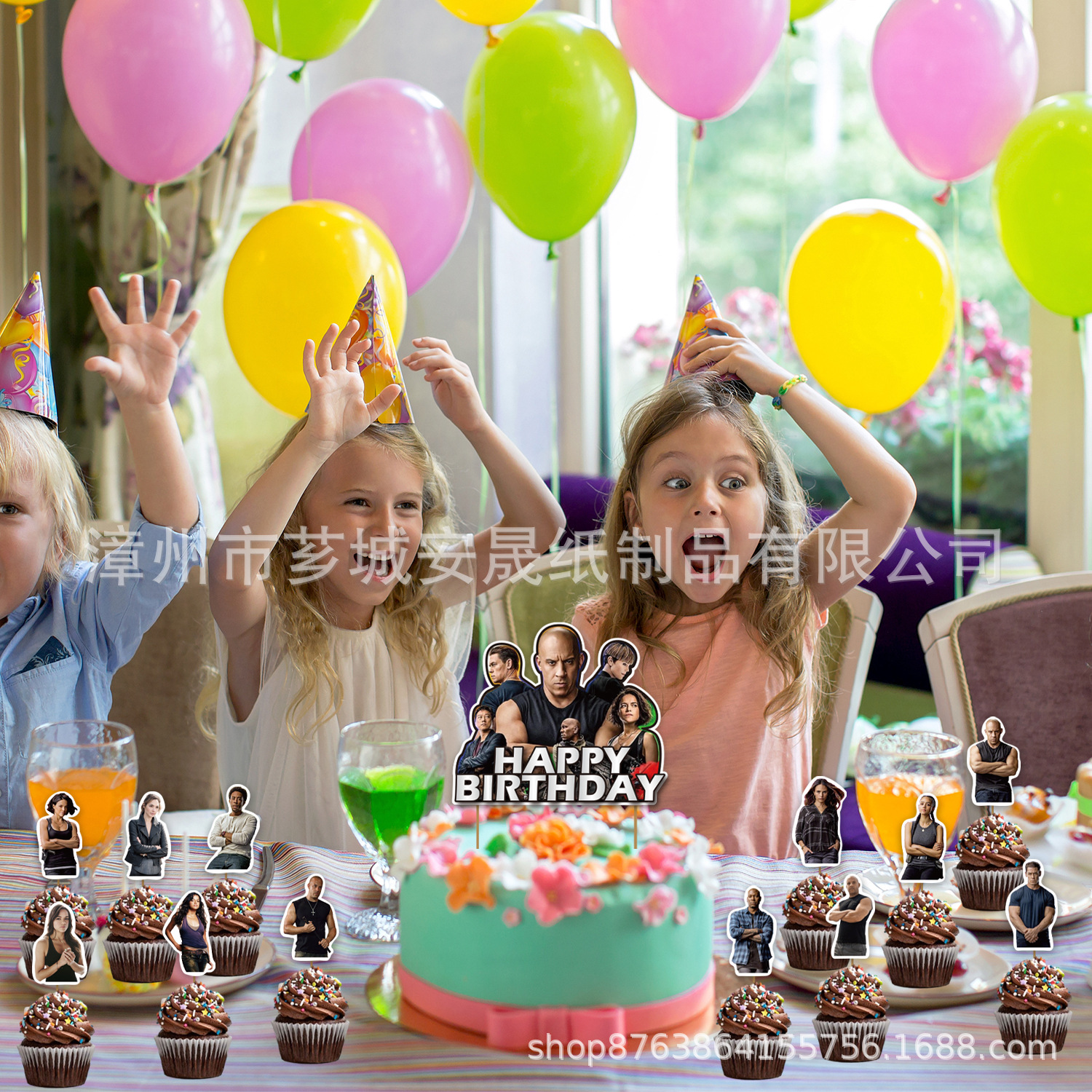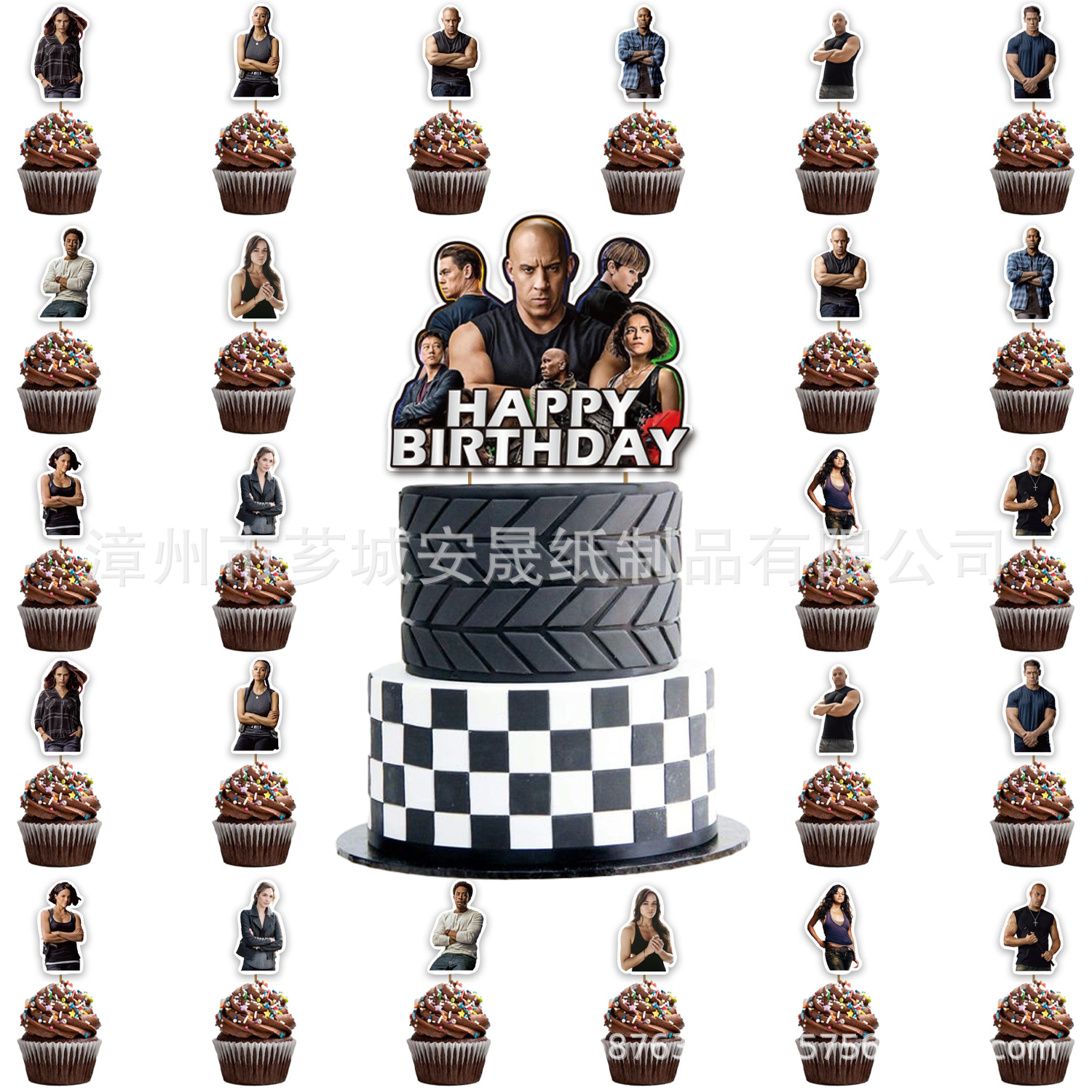 재고 빠르고 격렬한 테마 생일 파티 장식 생일 케이크 카드 크기 깃발 장식 용품스토어 가기
