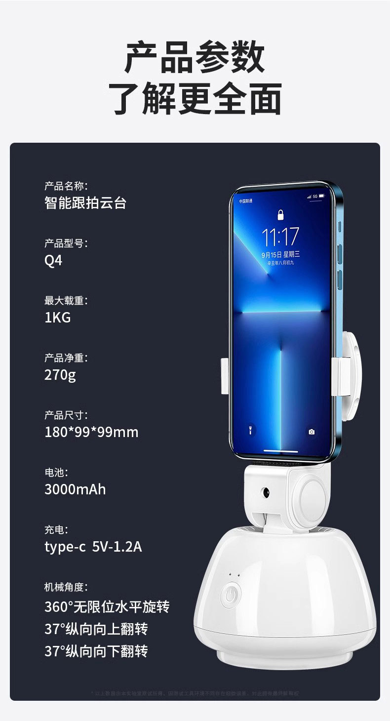 【产品清单】:包装盒、智能跟拍云台、PP袋、说明书、充电线