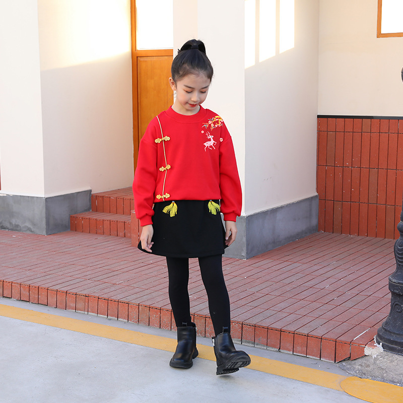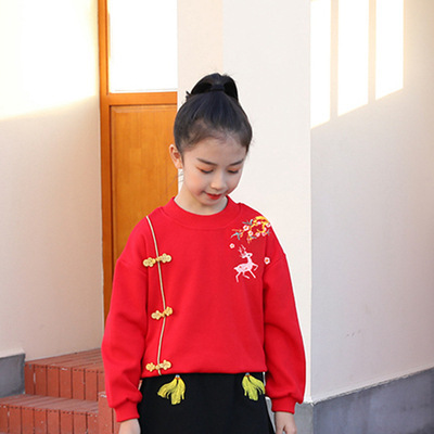소년을위한 용의 해의 어린이 해 원피스 가을과 겨울 소녀를위한 중국 스타일 새해 원피스 기모 축제 당나라 세트 한 세트