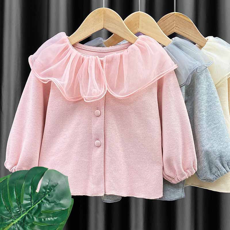2020 가을 어린이 소녀 레이스 옷깃 승무원 목 코트 새로운 대외 무역 아동복 머리카락 세대