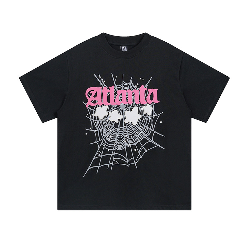 2024 여름 새로운 스트리트 패션 브랜드 Sp5der 스파이더 웹 스타 프린트 캐주얼 코튼 티셔츠 남성과 여성