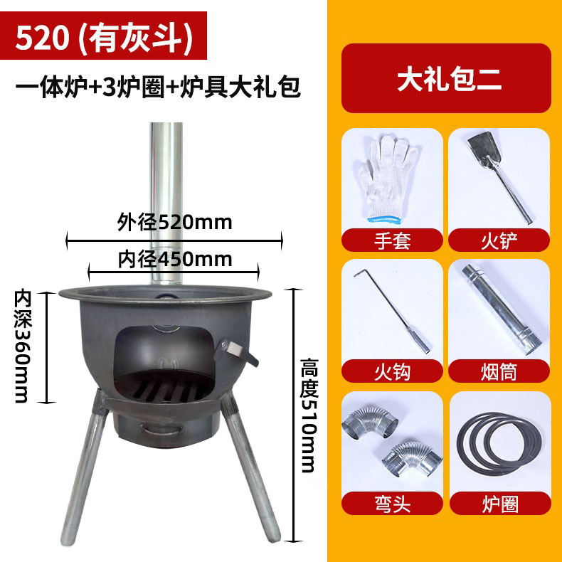 장작 난로 통합 성형 장작 난로 장작 난로 가정용 농촌 장작 난로 대형 냄비 테이블 불타는 장작 모바일 스토브