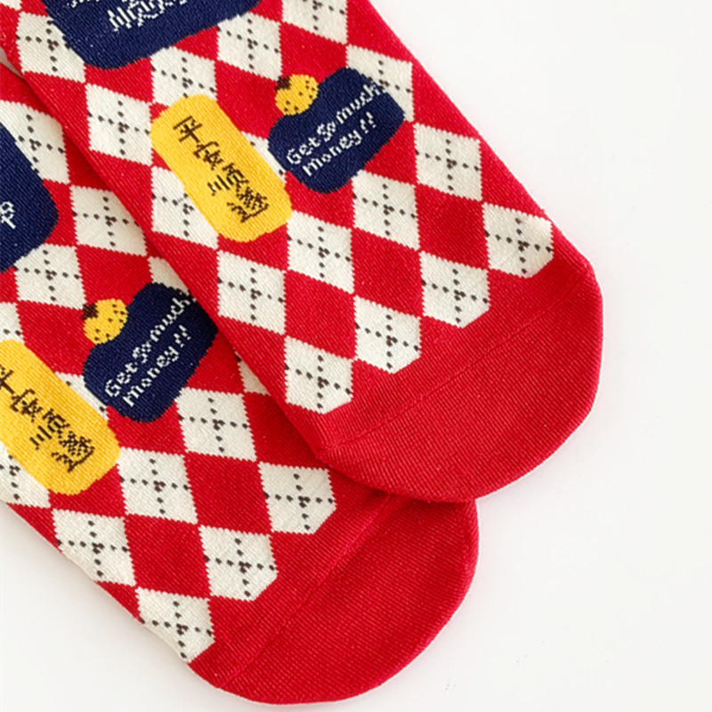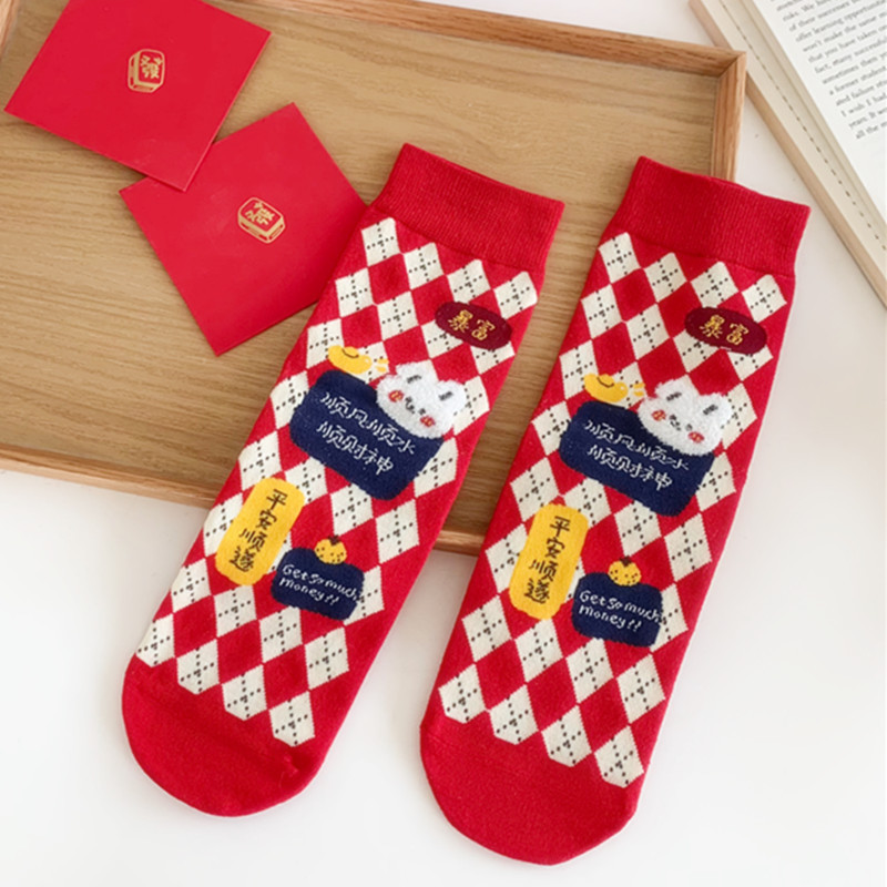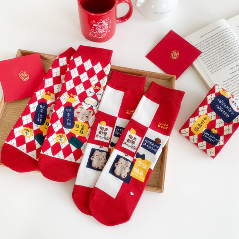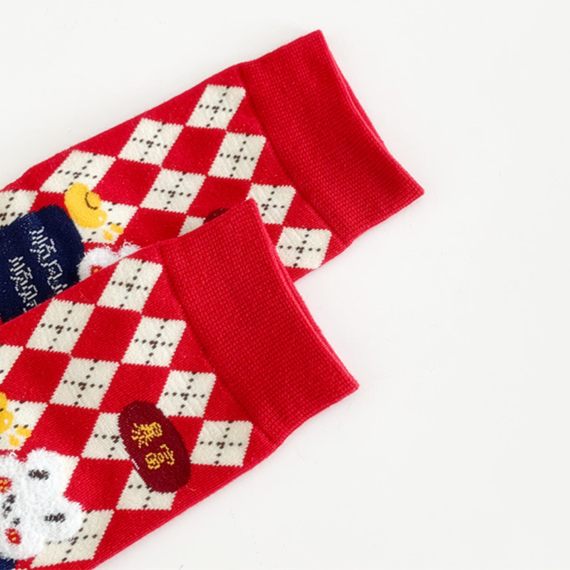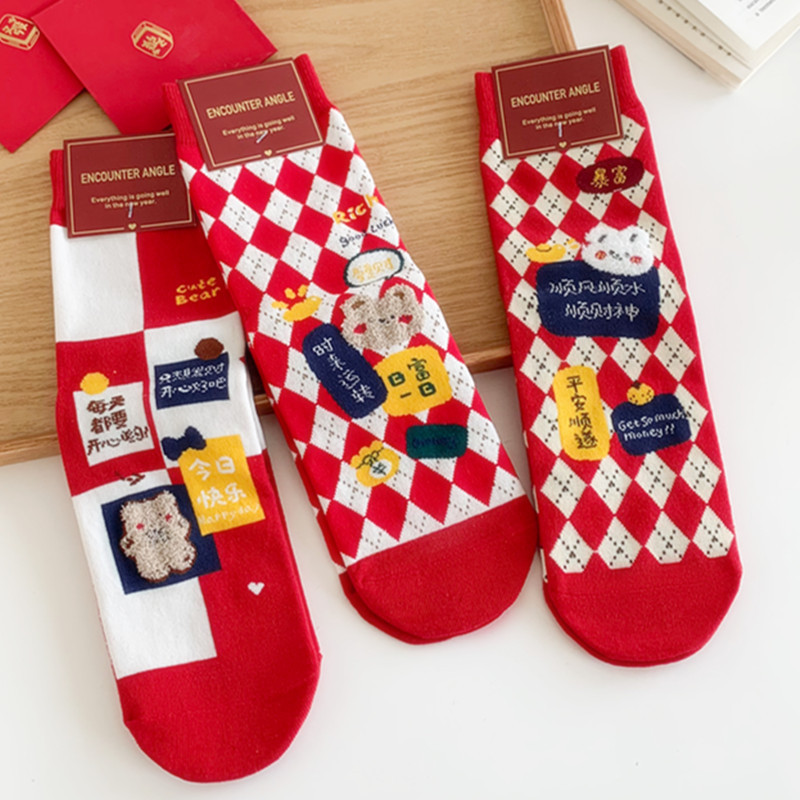 새해 양말 남자와 여자를위한 여자의 봄과 가을 빨간 양말 귀여운 토끼 고양이 빨간 커플 결혼식 축제 면화스토어 가기