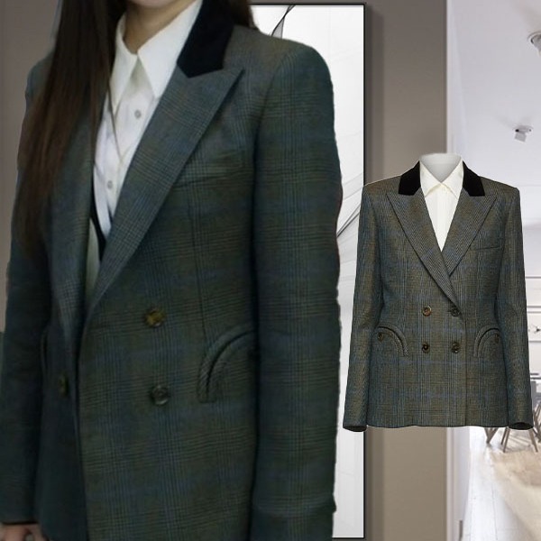 Bai Lu Zheng Shuyi 같은 스타일의 옷 체크 무늬 세트 재킷 여성용 세트 셔츠 내부 바지스토어 가기