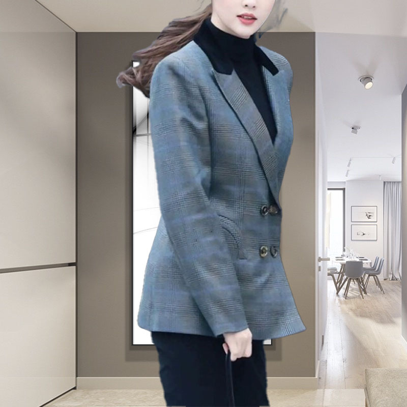 Bai Lu Zheng Shuyi 같은 스타일의 옷 체크 무늬 세트 재킷 여성용 세트 셔츠 내부 바지