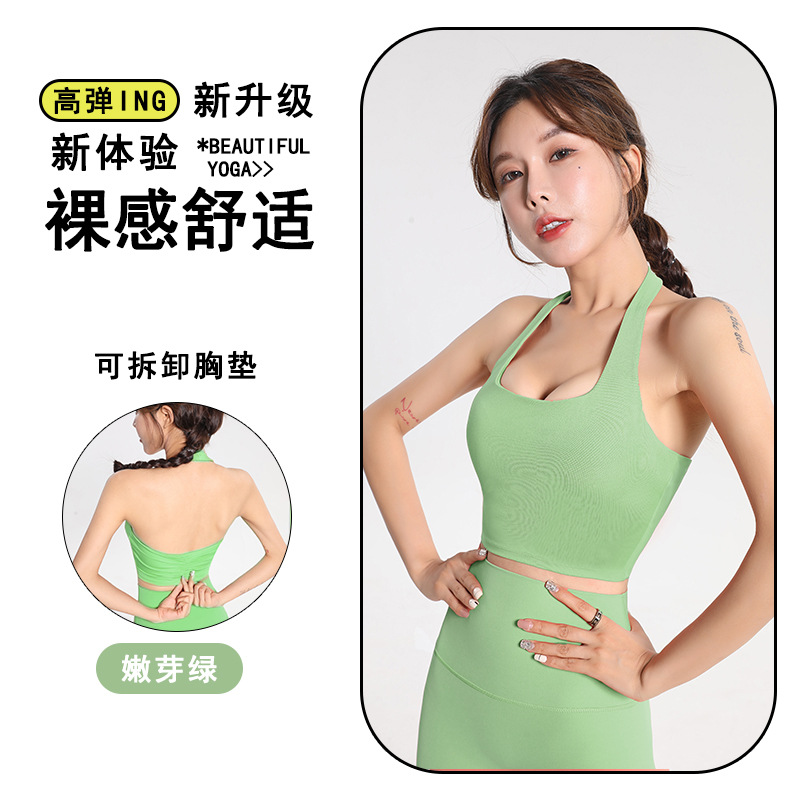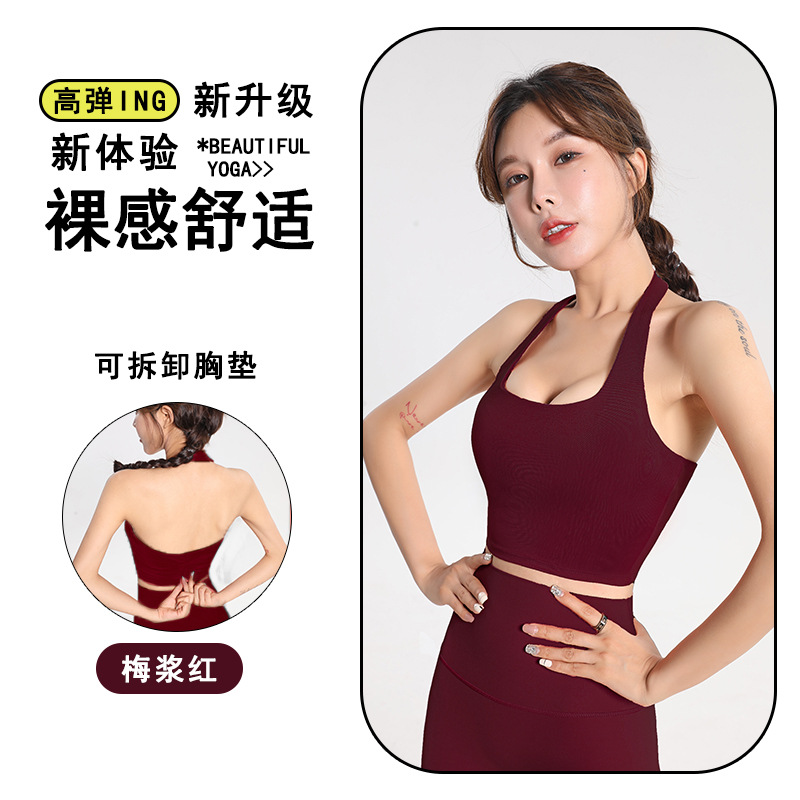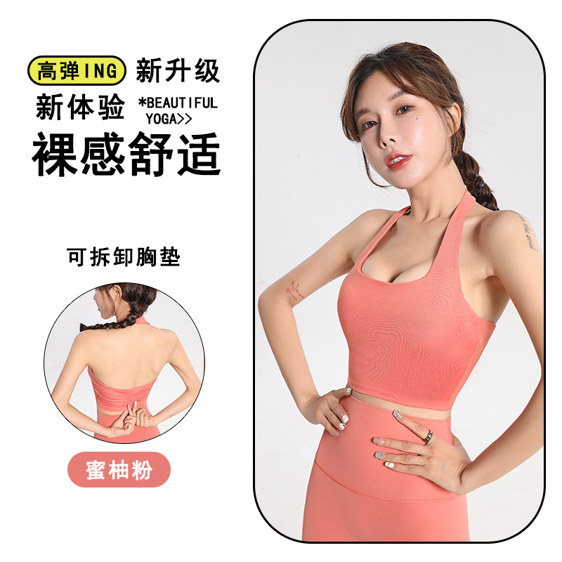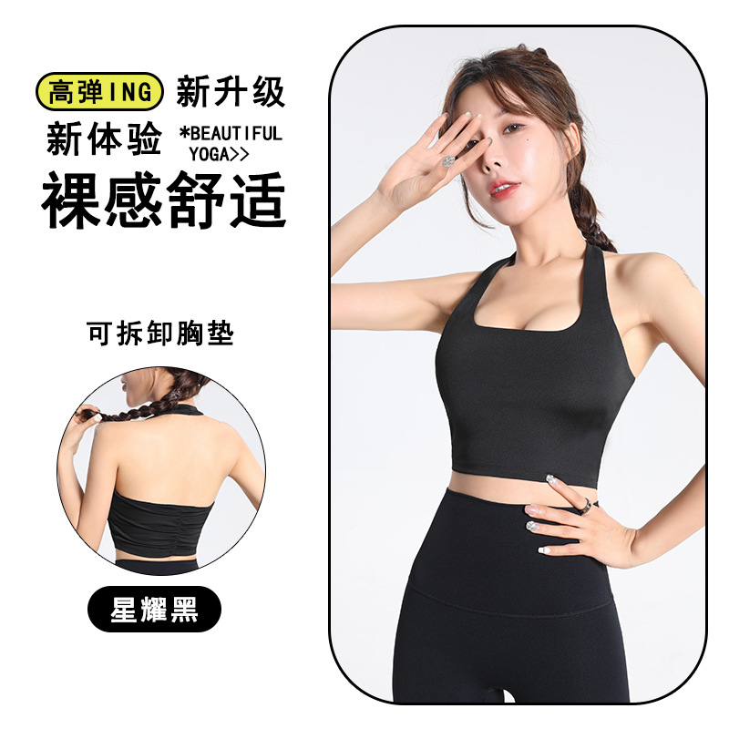 교수형 목 스포츠 속옷 여성용 충격 방지 및 처짐 방지 큰 가슴 요가 조끼 탈착식 달리기 훈련 피트니스 브라스토어 가기