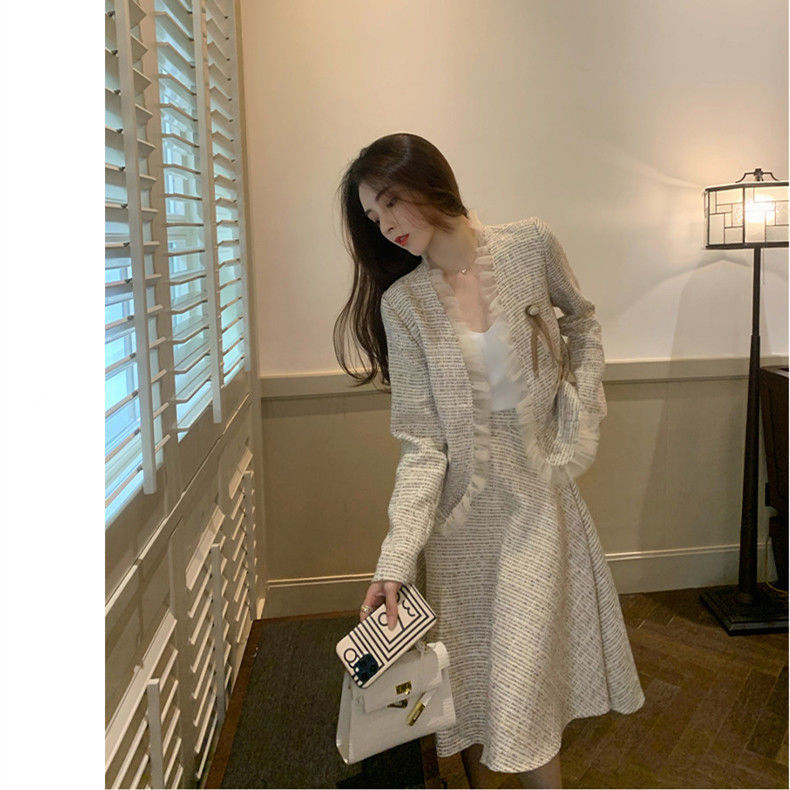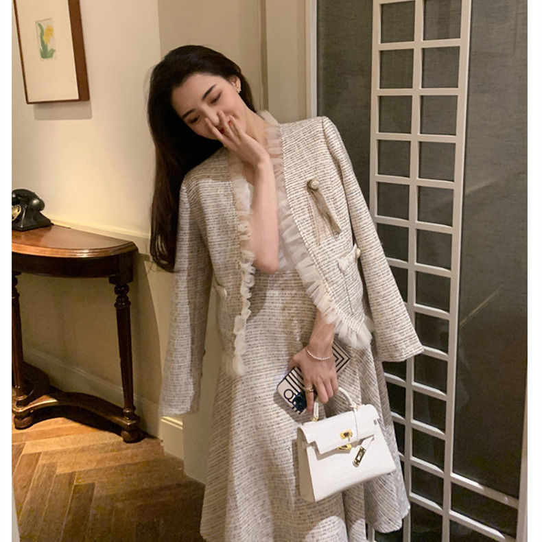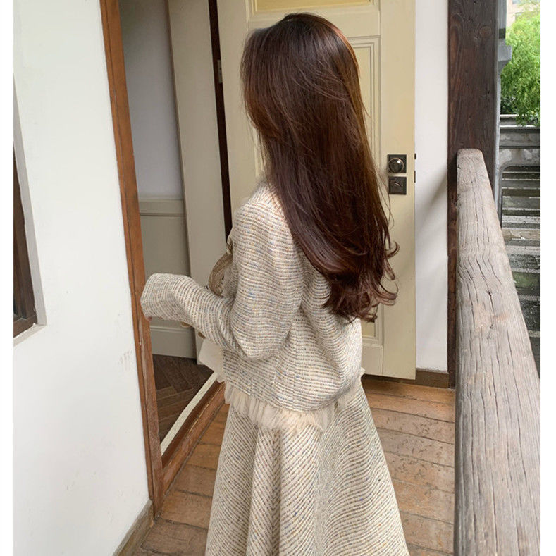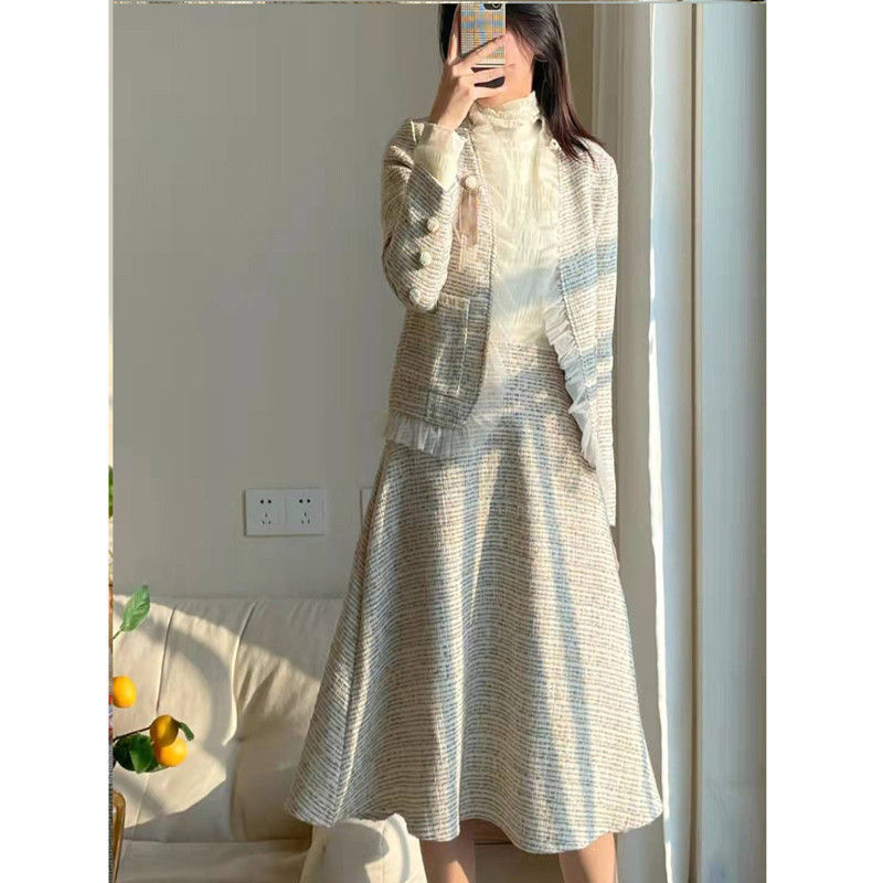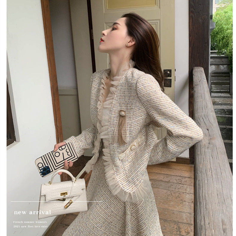 2023 새로운 프랑스 스타일 우아한 유명한 봄과 가을 패션 사교계 슬림 트위드 스몰 샤넬 스타일 스커트 투피스 세트스토어 가기