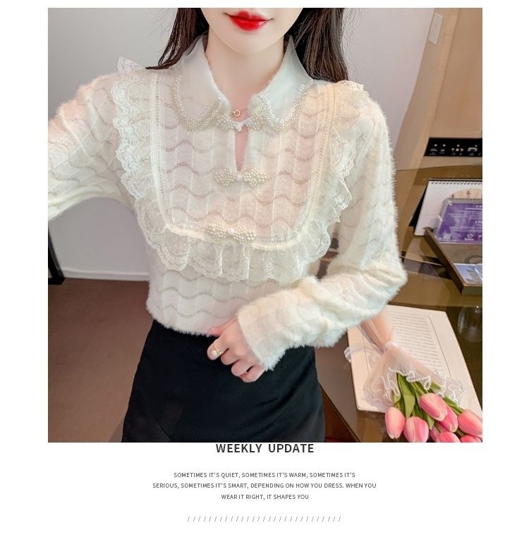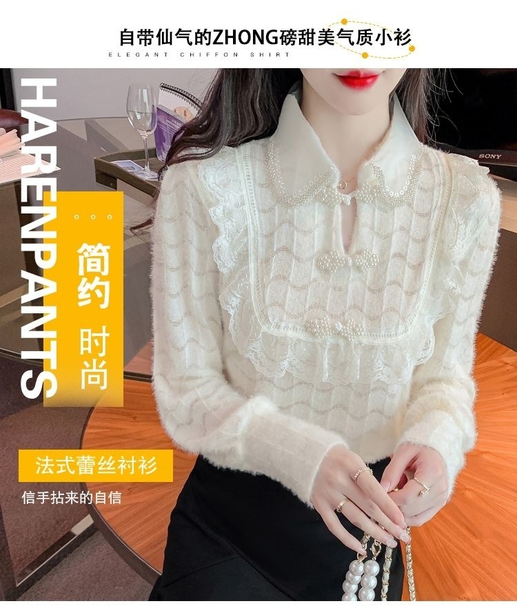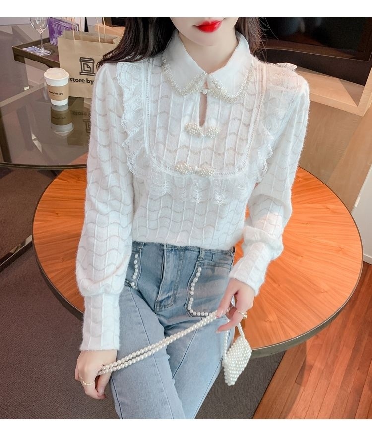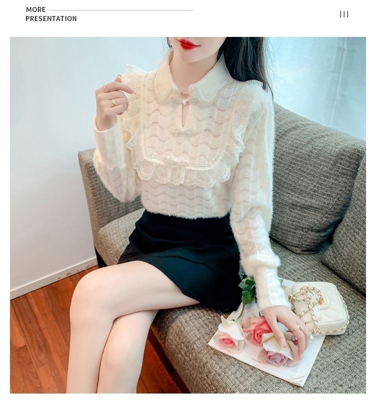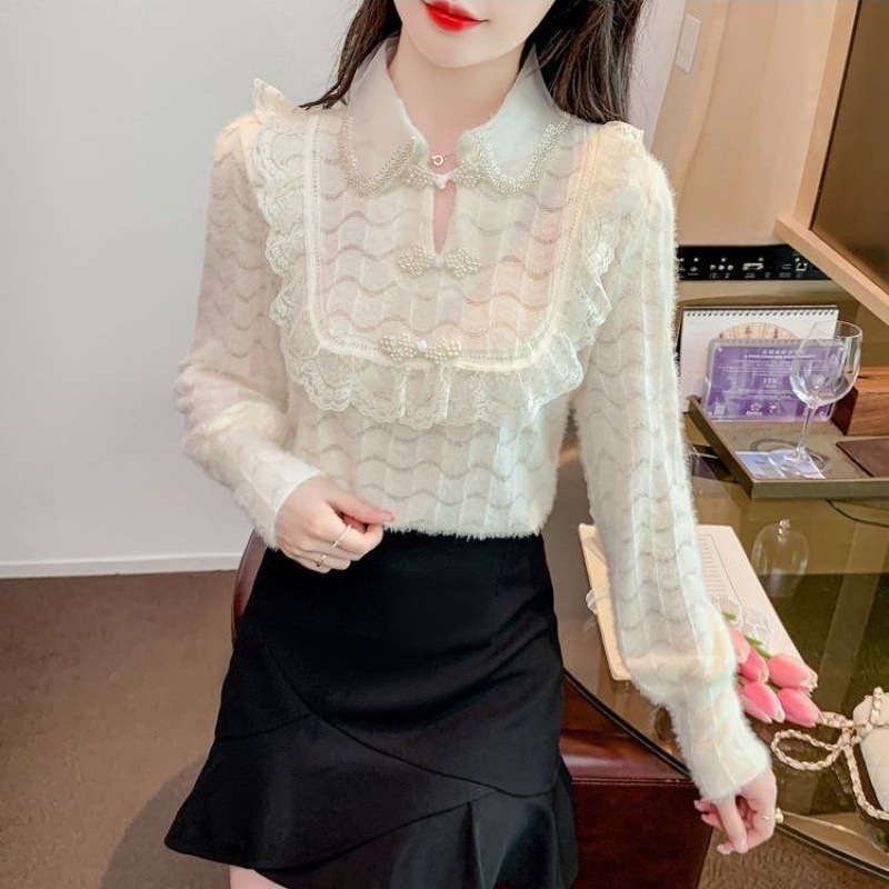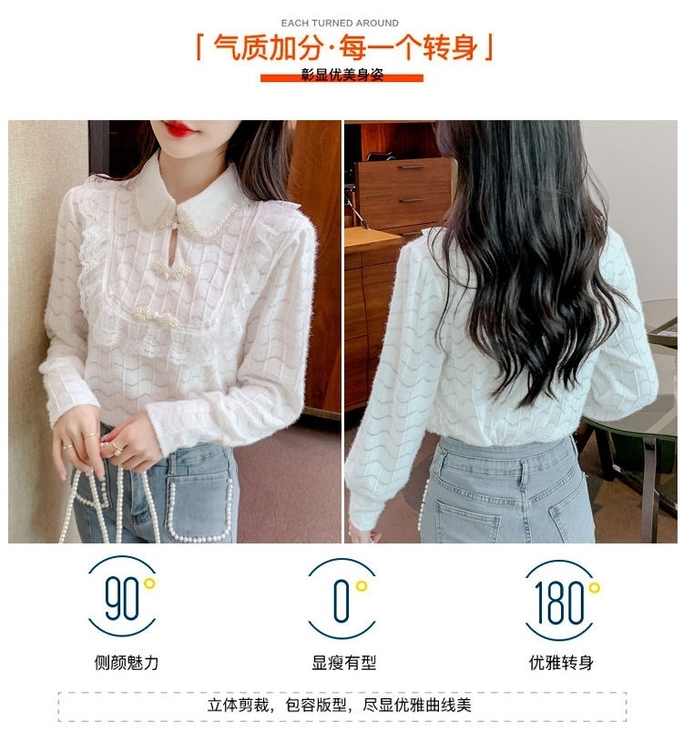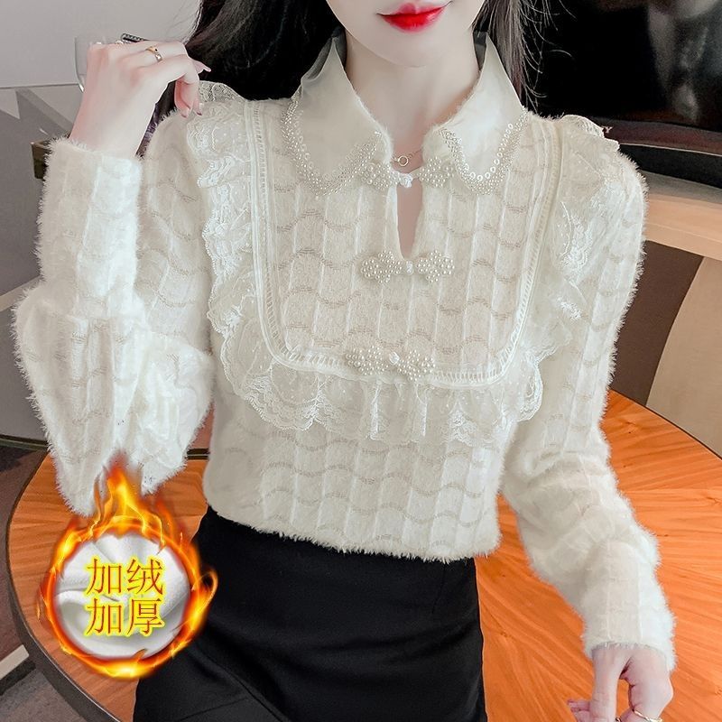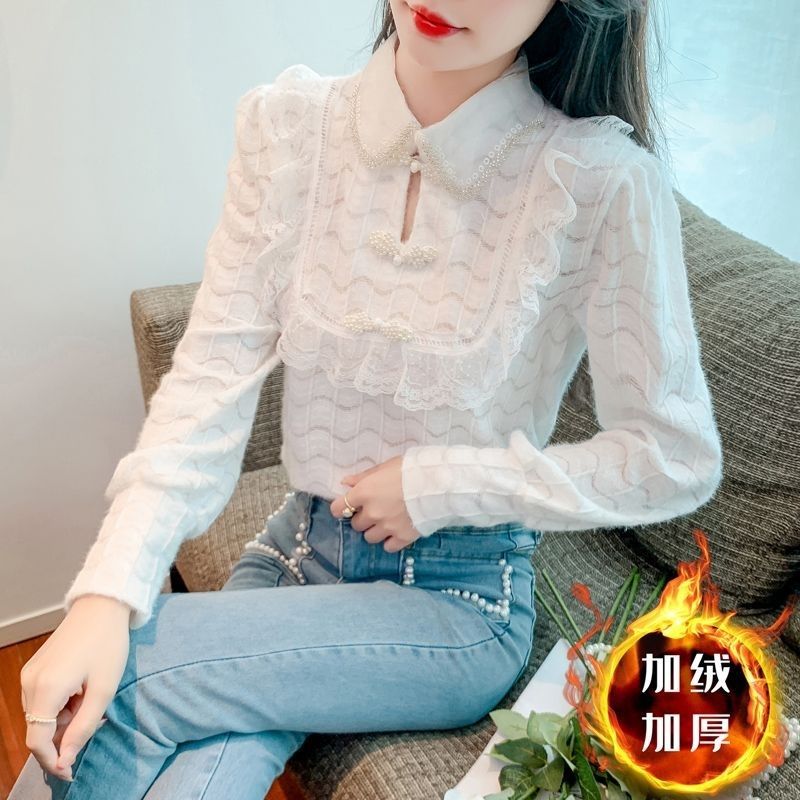 패션 기모 레이스 베이스 셔츠 여자의 가을과 겨울 2023 겨울 새로운 서양 스타일 두꺼운 따뜻한 내부 셔츠 탑스토어 가기
