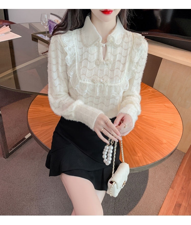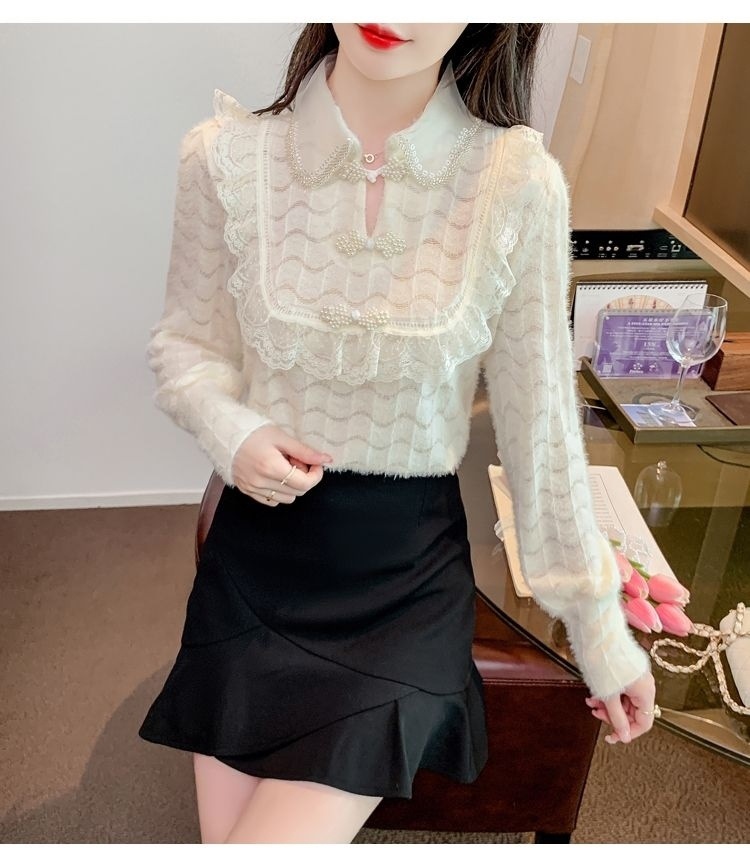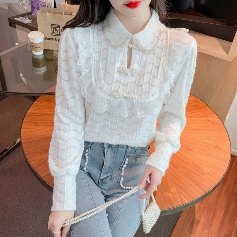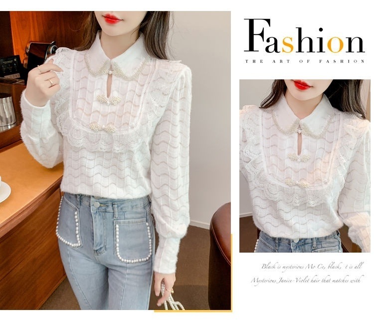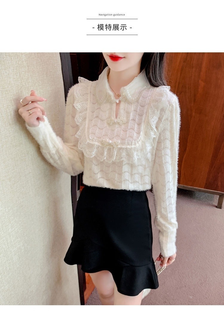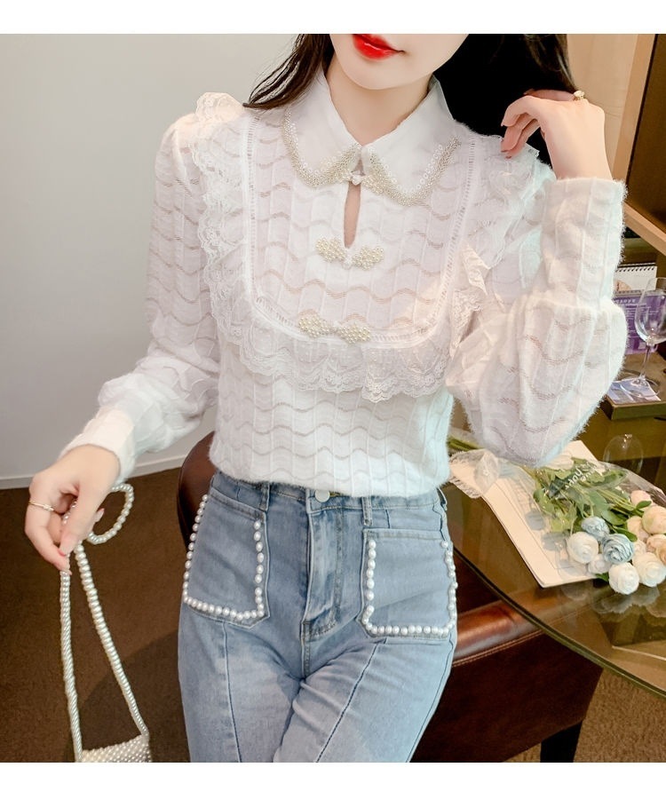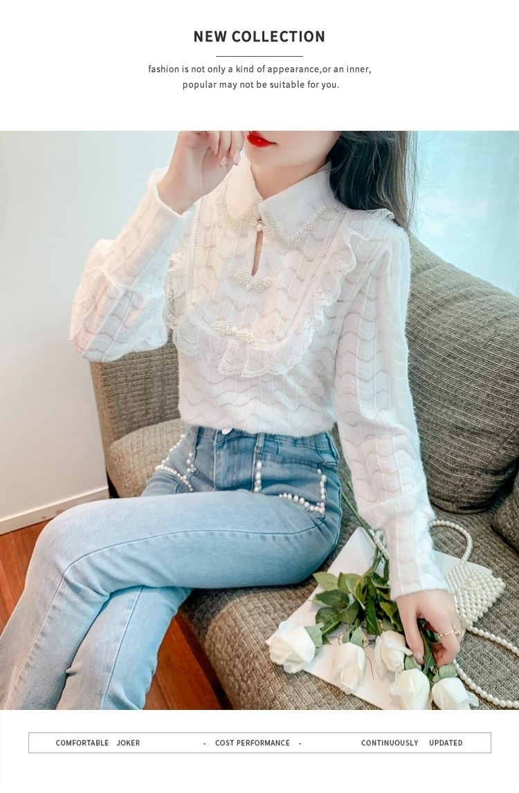 패션 기모 레이스 베이스 셔츠 여자의 가을과 겨울 2023 겨울 새로운 서양 스타일 두꺼운 따뜻한 내부 셔츠 탑스토어 가기